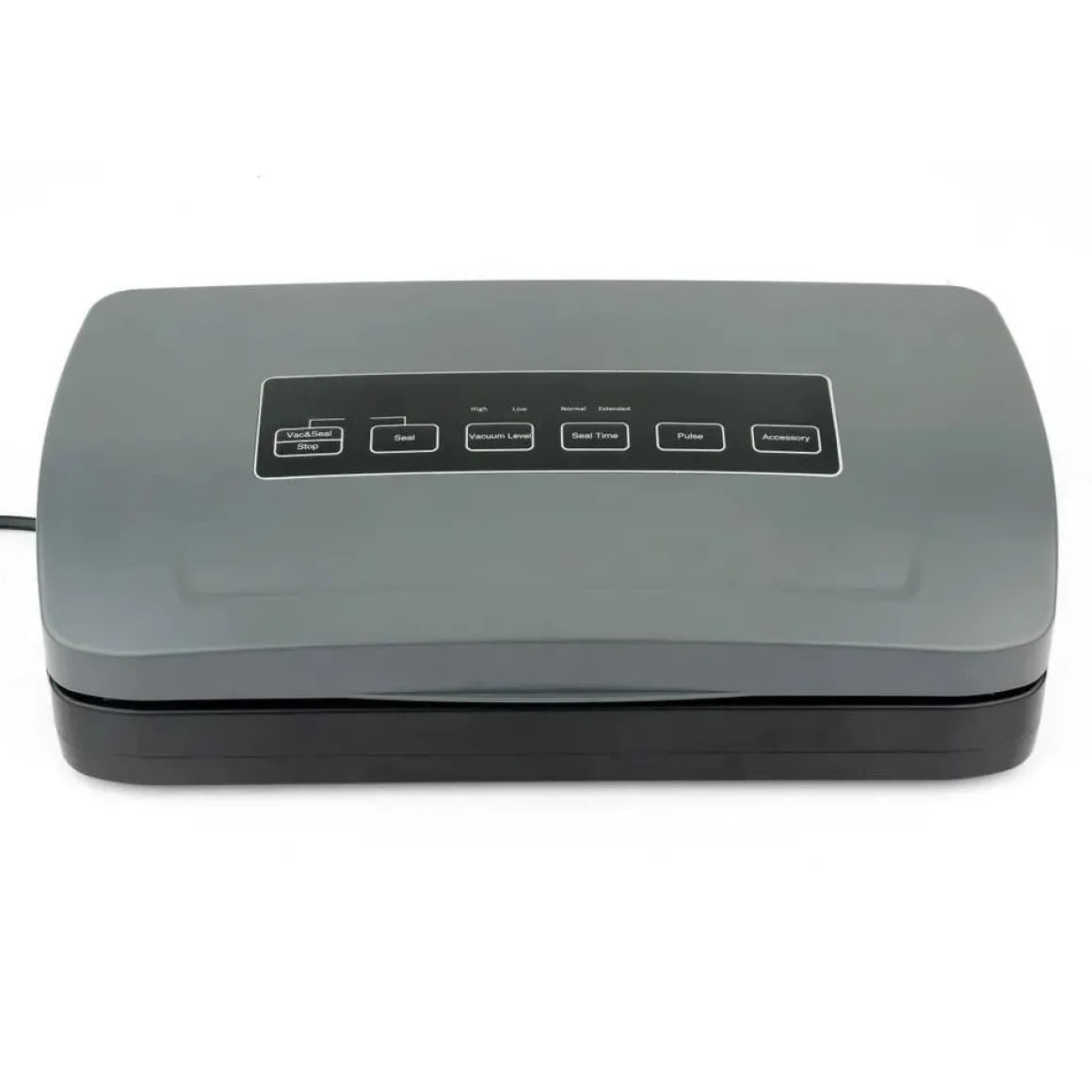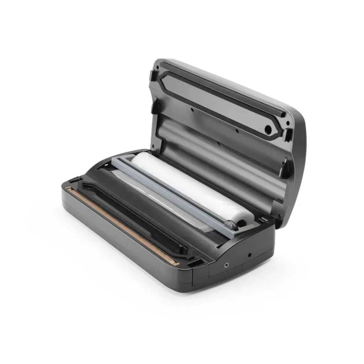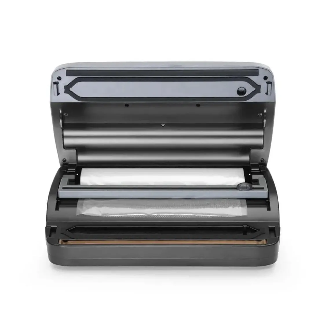 ABS-behuizing, speciaal ontwerp voorkomt dat vloeistof de pomp binnendringt. Ingebouwde container voor vacuümzakrol. Alleen voor vacuümzakken met reliëf met een max. Breedte van 300 mm. Keuze uit twee sealtijden en twee niveaus van vacuümkracht. Pompcapaciteit: 6,5 l / min ± 15%. De breedte van de sealbalk is 2,2 mm. Gewicht: ongeveer 2 kg.