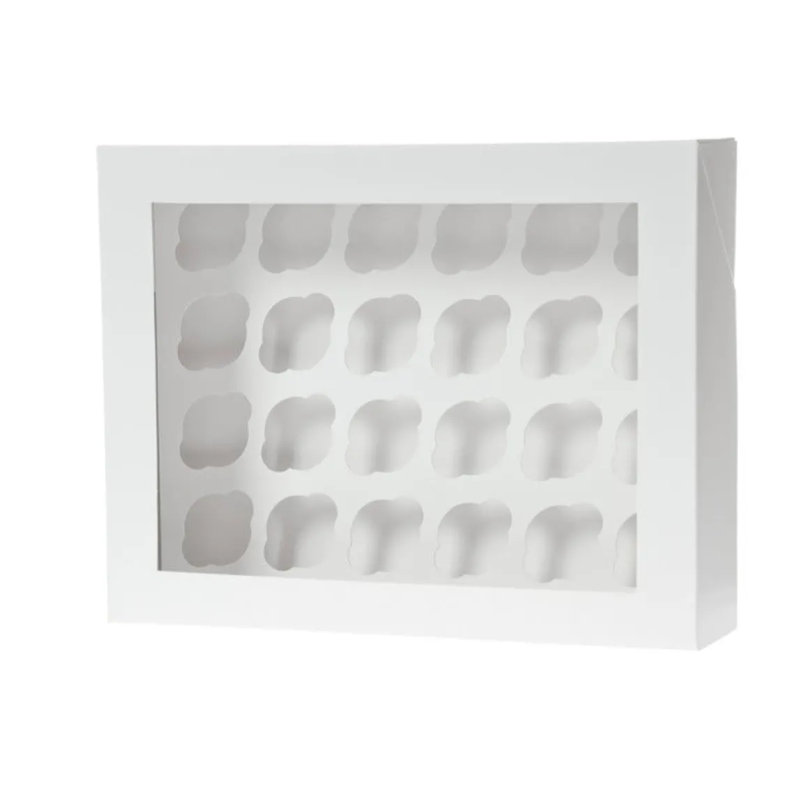 Witte cupcake doosjes voor 24 MINI cupcakes. Mooi om in te presenteren, weg te geven of om in te vervoeren. Door het handige transparante venster zie je altijd de (zelfgemaakte) cupcakes zitten. Deze cupcake box heeft een mooie basic witte uitstraling. De cupcake doos wordt natuurlijk geleverd met een tray, zodat de cupcakes niet kunnen verschuiven.