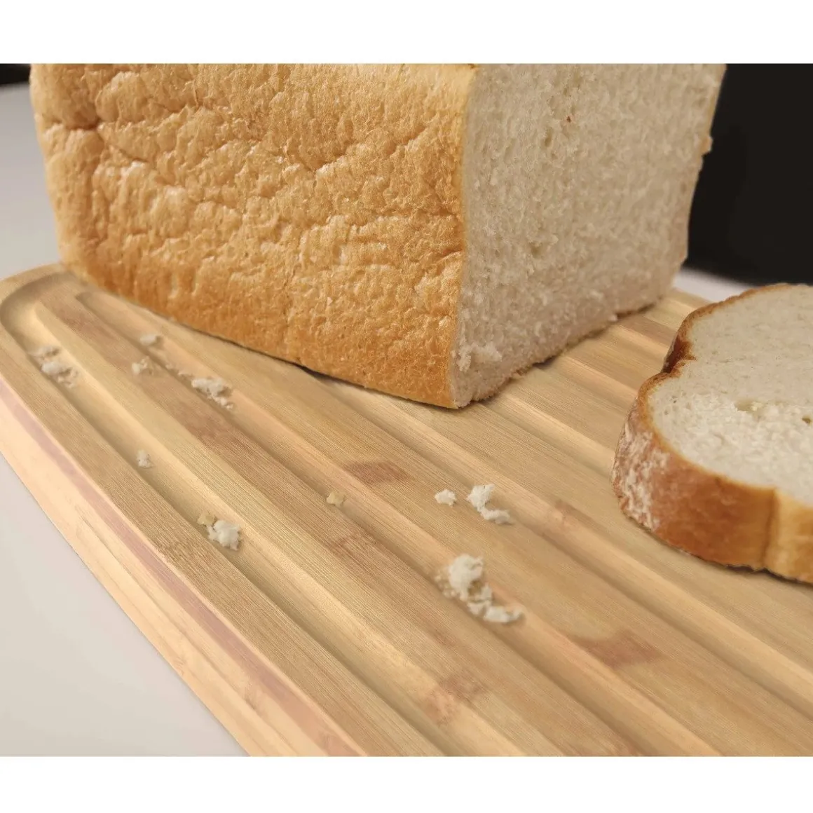 Daarnaast heeft de deksel een dubbele functie. Uiteraard om af te sluiten, maar de kan ook gebruikt worden als snijplank. De bamboe plank heeft aan de ene kant een handvat en aan de andere kant groeven om de kruimels op te vangen.