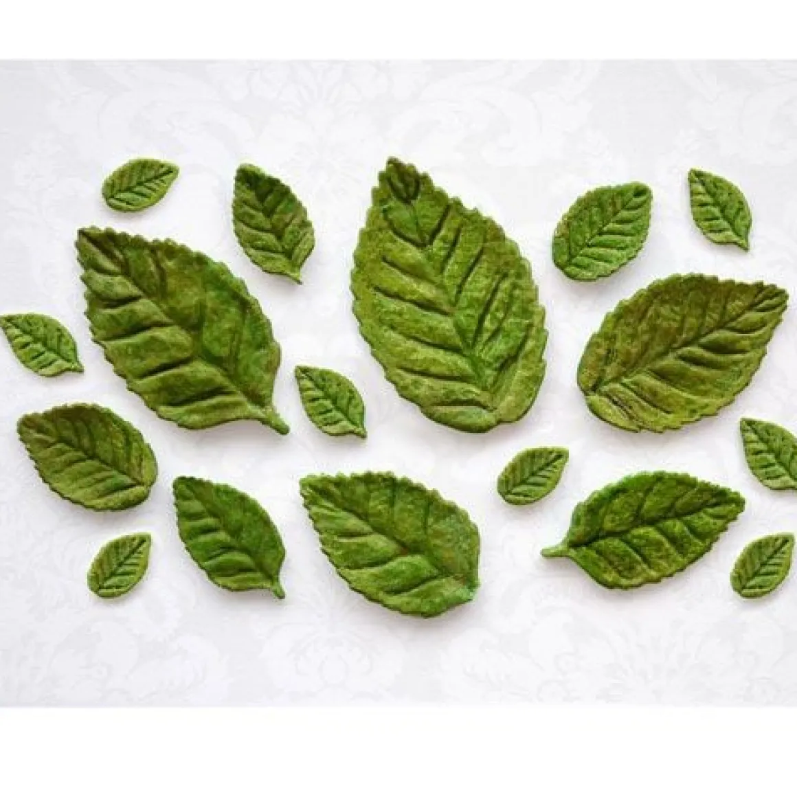 Met deze gedetailleerde mold van Katy Sue kun je gemakkelijke vele rozen blaadjes maken! Deze rozen bladeren zijn perfect in combinatie met zelf gemaakte fondant/marsepein rozen voor op een bruidstaart.
