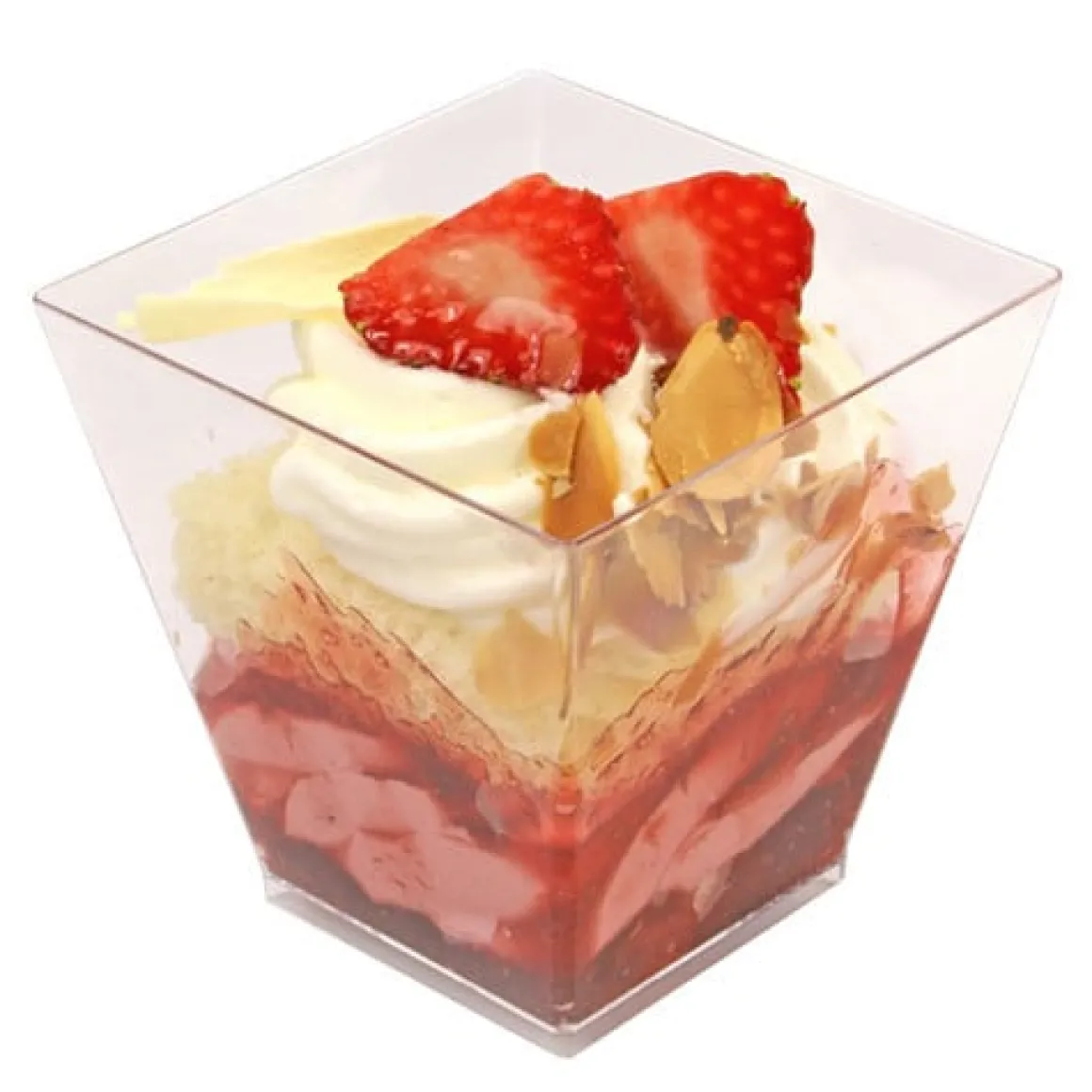 Dit is een transparante luxe kunststof verpakking voor lepelgebak. Door het stevige kunststof zijn de cups gemakkelijk in gebuik en eenvoudig stapelbaar. Let op: deze cups worden geleverd zonder deksel.