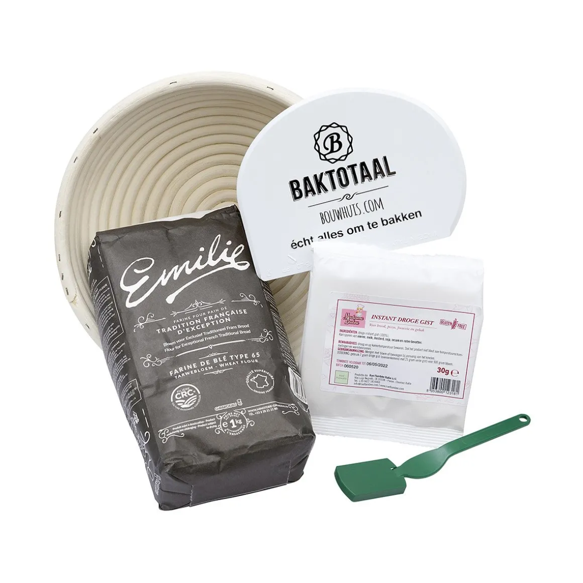 Heb je het pakket van Baktotaal in huis? Dan krijg je niet alleen tarwebloem en gist. Naast de ingrediënten krijg je ook een deegrijsmandje, stokbroodmesje, deegkrabber en een uitgebreide handleiding voor het succesvol bakken van een ambachtelijk Frans brood. Deze producten kun je allemaal weer gebruiken om zelf nog meer heerlijke broden te bakken. Je kunt het tarwebloem dan ook vervangen door een ander soort bloem om er een andere twist aan te geven. Laat de geur van zelfgebakken brood maar uit je oven komen!