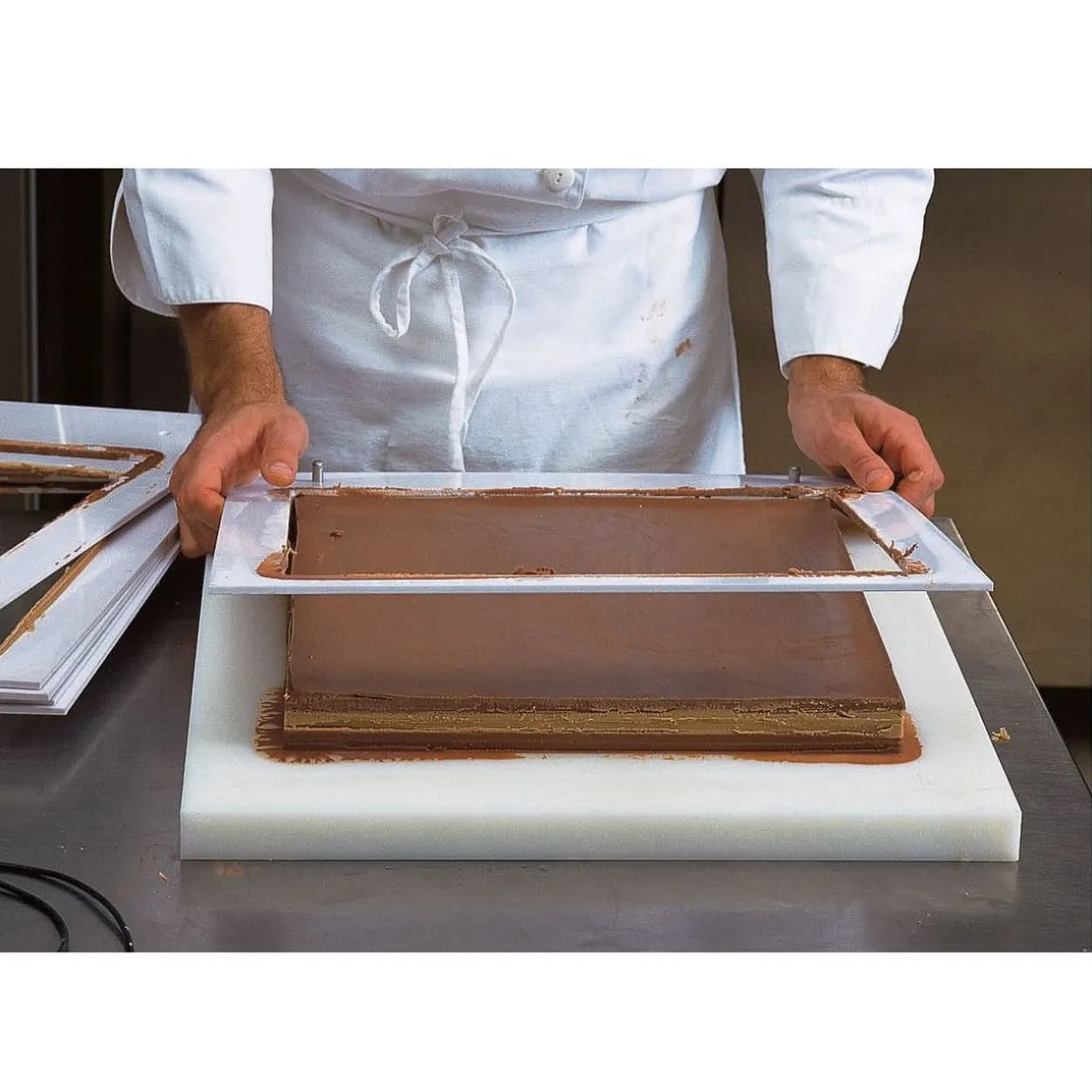 Frame / Sjabloon van het merk Martellato om handmatig dunne kapsel-/biscuitplakken mee te ’trekken’ door middel van een krabber. Met dit frame krijg je een exacte biscuitplak van 57x37cm met een dikte van 5 mm.