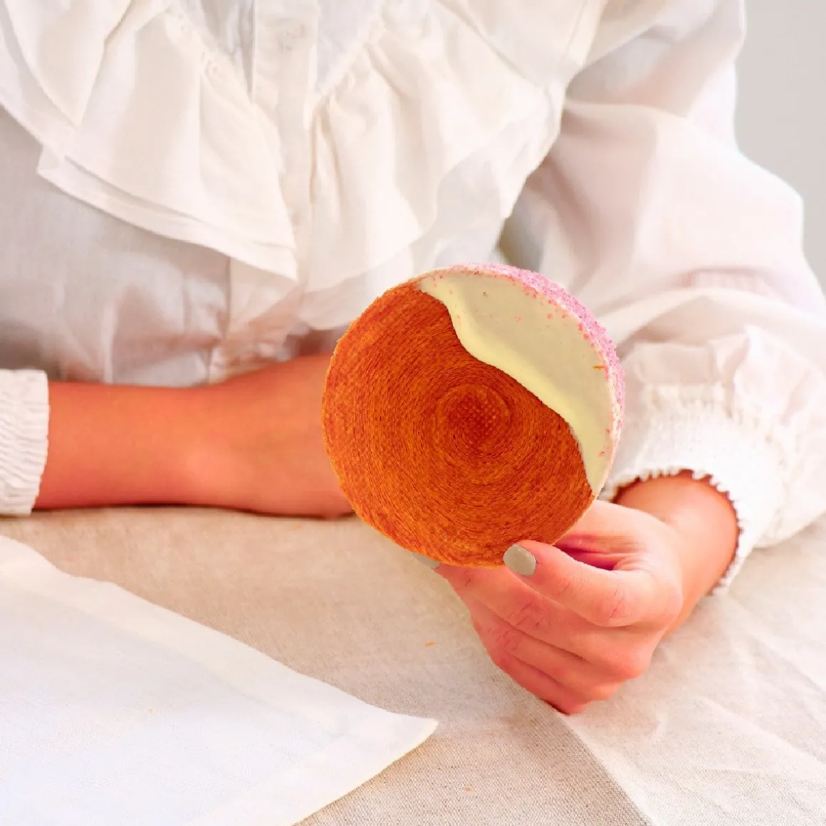 De New York Roll is een traktatie, gevuld met crème en afgewerkt met chocolade of glazuur. Door deze taartring krijgt het gebak zijn cilindervorm met een mooie, egale zijkant. Vul de rol bijvoorbeeld met vanillecrème, pistache, frambozenbavarois of hazelnootpraliné en werk af met een dip in pure chocolade of een topping van gekaramelliseerde nootjes.