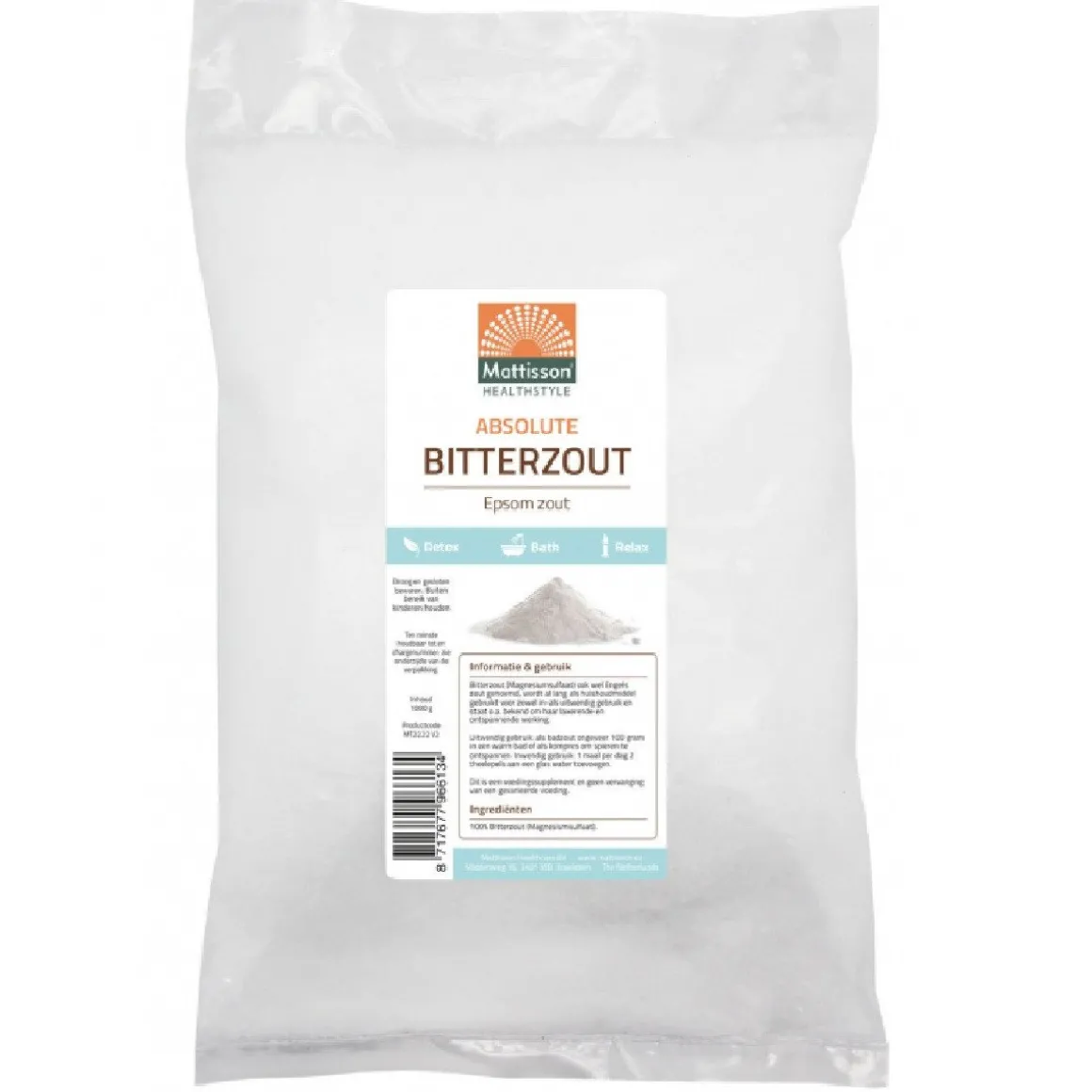 Mattisson Bitterzout Epsom (Magnesiumsulfaat) 1kg staat bekend onder verschillende namen. Het wordt bitterzout genoemd, maar ook Epsomzout, Engelse zout en magnesiumsulfaat. De namen Epsom- en Engelse zout komen van het Engels plaatsje Epsom in Surrey. In deze plaats ligt de bitter- zoutwaterbron waar het zout naar vernoemd is. Bitterzout is een natuurlijk product dat verder te vinden is in zeewater, als sedimenten van zoutmeren en als mineraal van kalksteen. Het zout is eigenlijk een mineraalverbinding van sulfaat en magnesium.