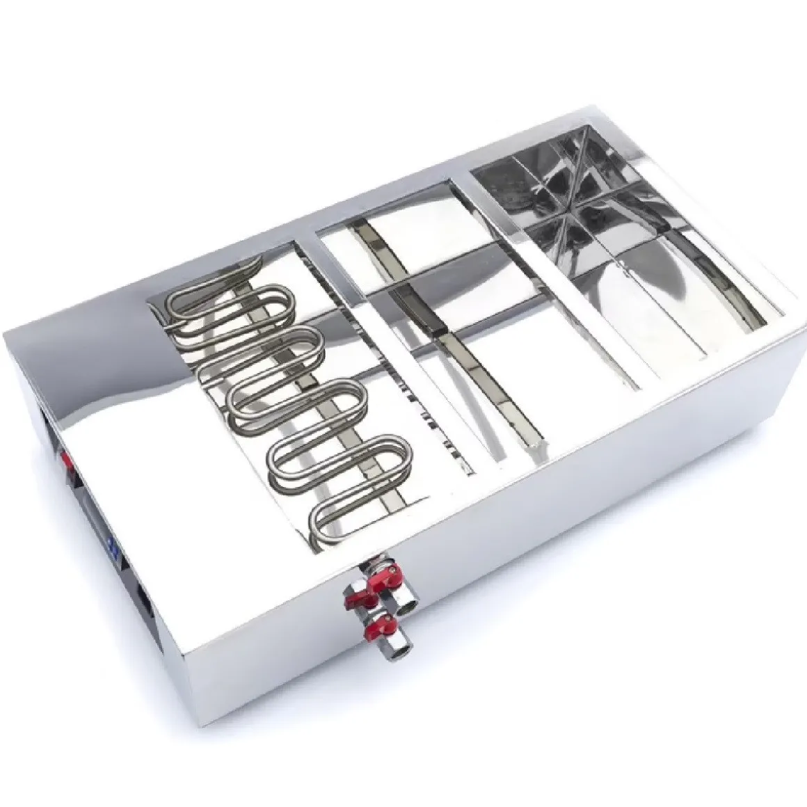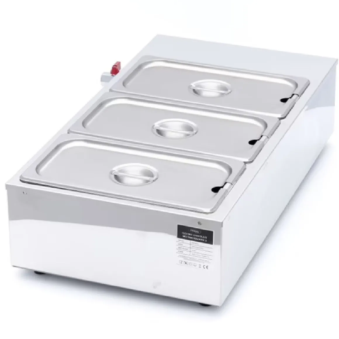 Met de Maxima Chocoladesmelter 3x 1/3GN Professioneel smelt je chocolade au-bain marie, waardoor chocolade niet verbrand. Dit apparaat zorgt ervoor dat chocolade gelijkmatig smelt. De chocoladesmelter heeft 3 GN bakken, in elk past ongeveer 4 kilogram chocolade. Dit maakt het apparaat perfect voor ijssalons, chocolaterieën en vele andere horeca ondernemingen.