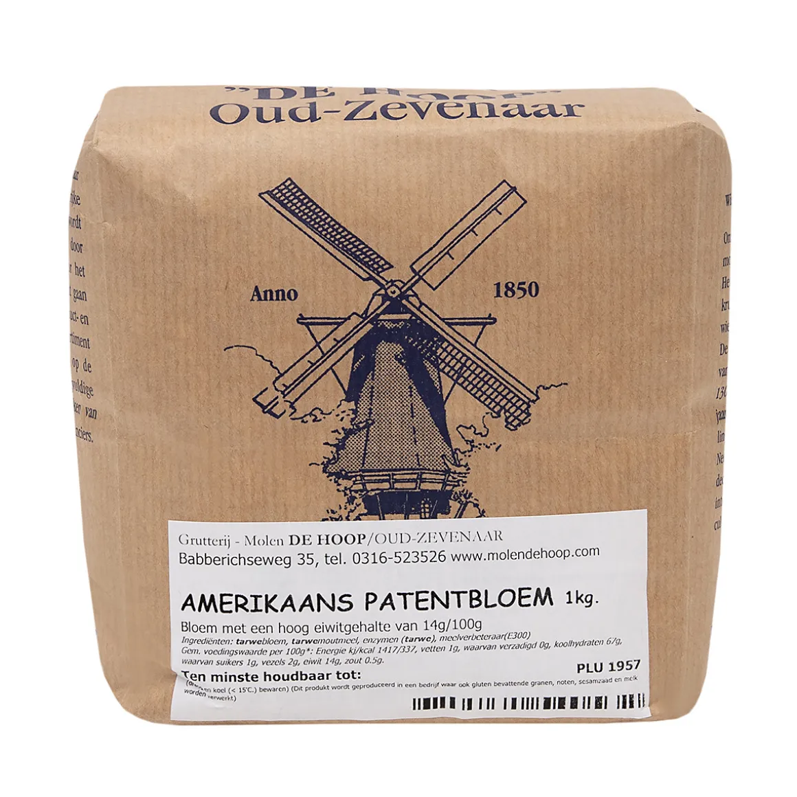 Bloem met hoog eiwit gehalte van 14 gram per 100 gram. Bij uitstek geschikt voor luxe(desem)broden en stollen. Door Molen de Hoop Amerikaanse Patentbloem te gebruiken krijg je een luchtiger brood.