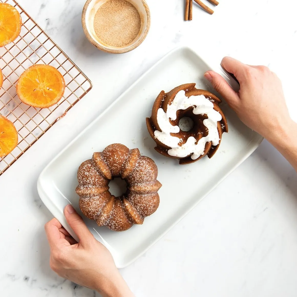 Breng je bakcreaties naar een hoger niveau met de Nordic Ware Classic Bundt Duet Bakvorm, een prachtig vormgegeven en veelzijdige bakvorm waarmee je twee elegante, perfect geportioneerde cakejes bakt. Ideaal voor wie houdt van verfijnde presentatie én smaak!