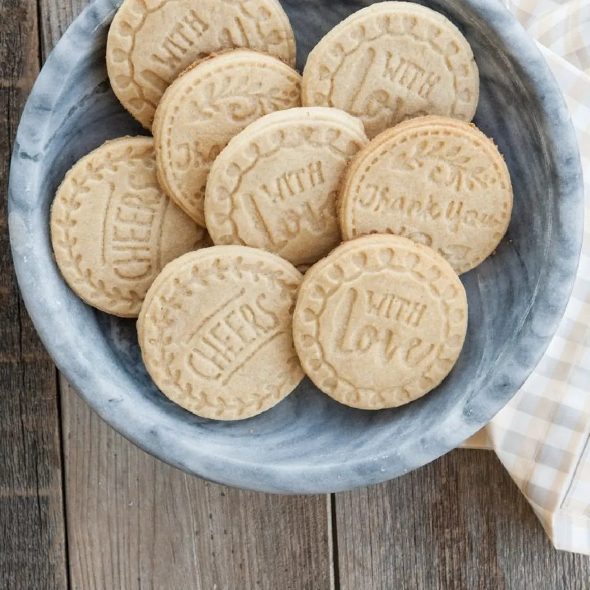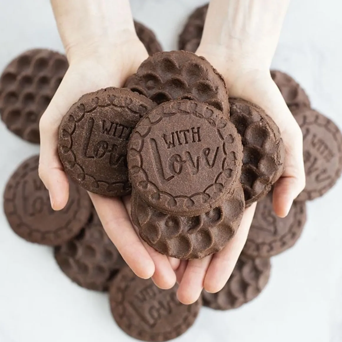 Let op: de koekjesstempels altijd met de hand wassen (het houten handvat niet onder water dompelen).