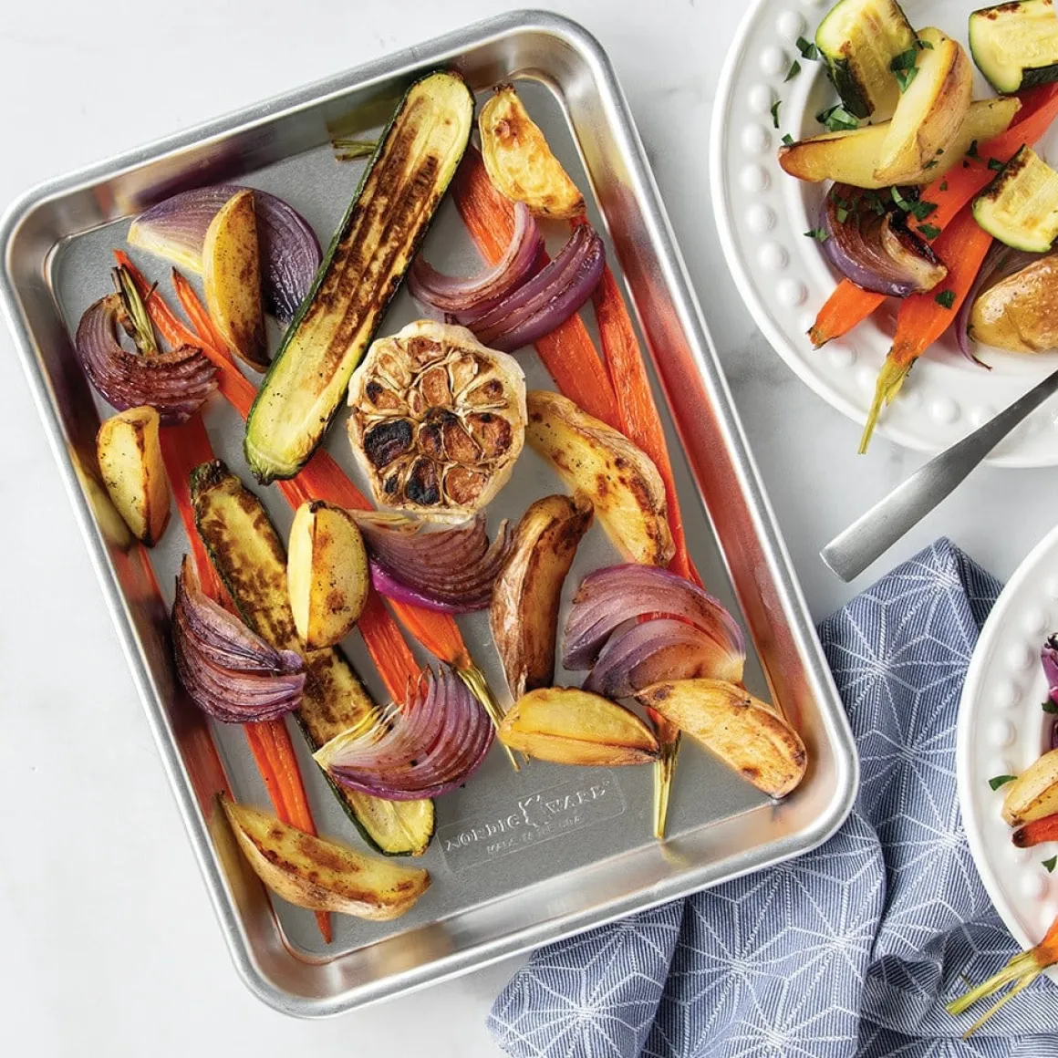 Of het nu ombrownies, koekjes of repen gaat, je bak het allemaal in de Nordic Ware TaartpanRechthoek. Daarnaast is de bakplaat ook nog een heel handig om kleine maaltijdente verwarm of op te warmen. Het is de perfect keukenhulp als het gaat om hapjesuit de oven halen. Je kunt de bakplaat ook gebruiken om dienblad of lunchblad. Maniergenoeg om deze rechthoeken taartpan te gebruiken.