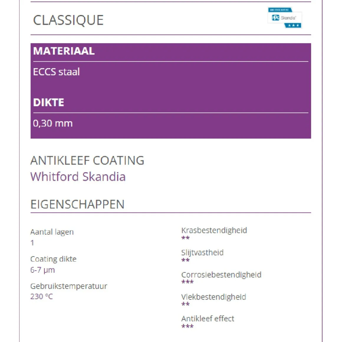 De bakvorm heeft een aantal fijne eigenschappen, de vorm is krasbestendig, slijtvast, corrosie bestendig, vlekbestendig en is antikleef.
