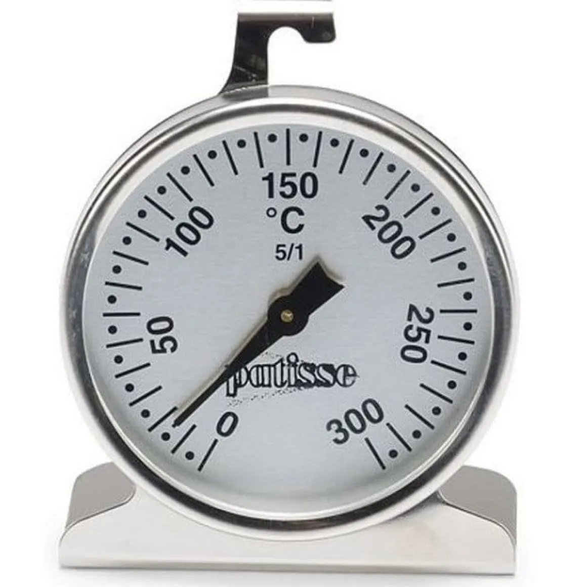 Thermometer van het merk Patisse voor het meten van de temperatuur in de oven. Deze oventhermometer meet van ± 30℃ tot 300℃. De thermometer is gemaakt van roestvrijstaal en de voorzijde is bedenkt met een glazen venster.