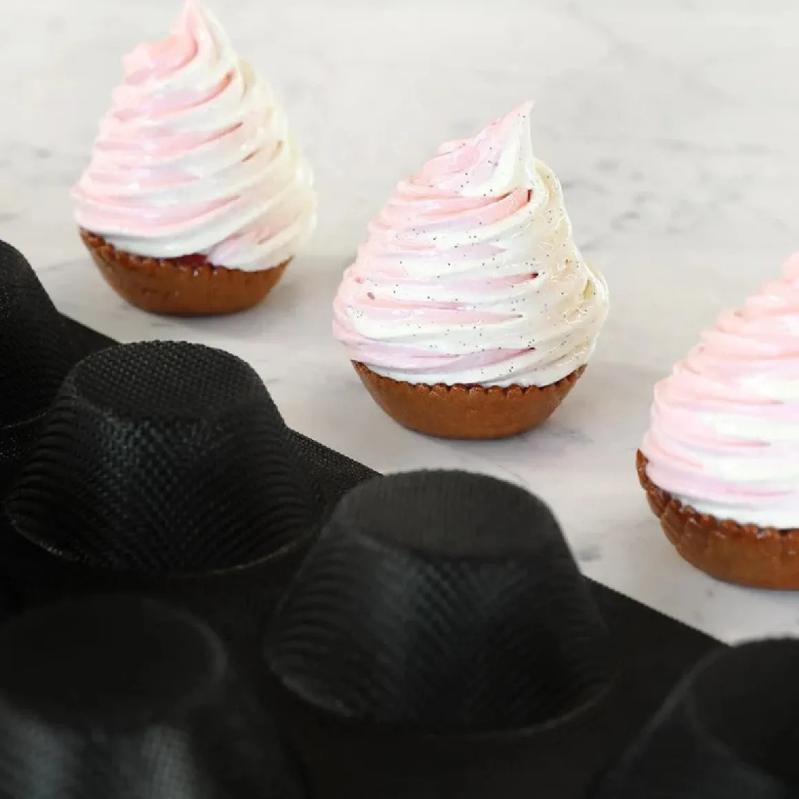 Bak bijvoorbeeld prachtige taartbodems en vul ze daarna met mousse, crème, fruit of ganache en werk ze af naar wens. Zo zet je eenvoudig gebakjes, klassieke muffins of zelfs hartige snacks op tafel.