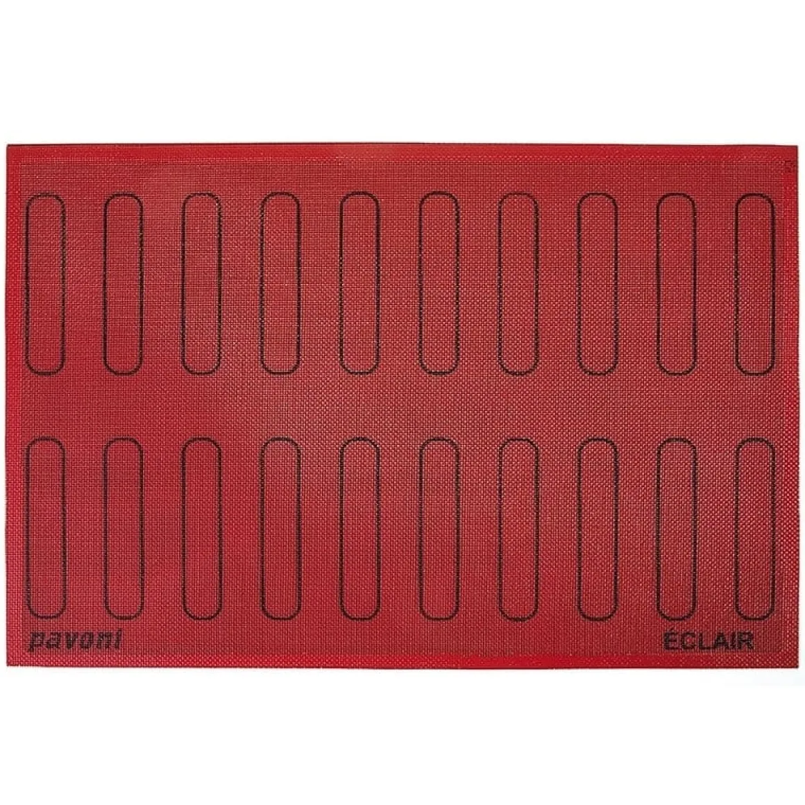Bakmat van Pavoni om eclairs te maken. Deze mat is micro-geperforeerd en non-stick, voor het beste bak-resultaat. In totaal kunnen er 20 eclairs tegelijk worden gebakken op de mat.