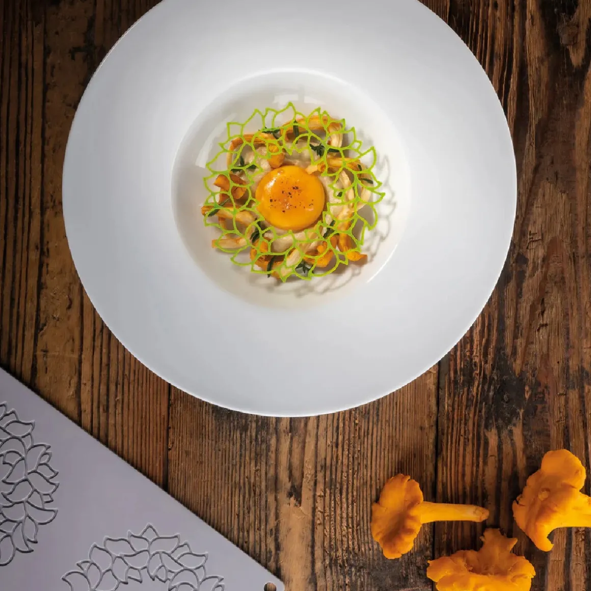 Deze vorm is ideaal voor het verwerken van tuillebeslag, , isomalt, eiwitbeslag, of gelei met een stevige consistentie. Gebruik de Bladerkrans bijvoorbeeld als een subtiele suikerkrans rond een dessert, maar ook leuk als een decoratief element van witte chocolade op een moussegebakje.