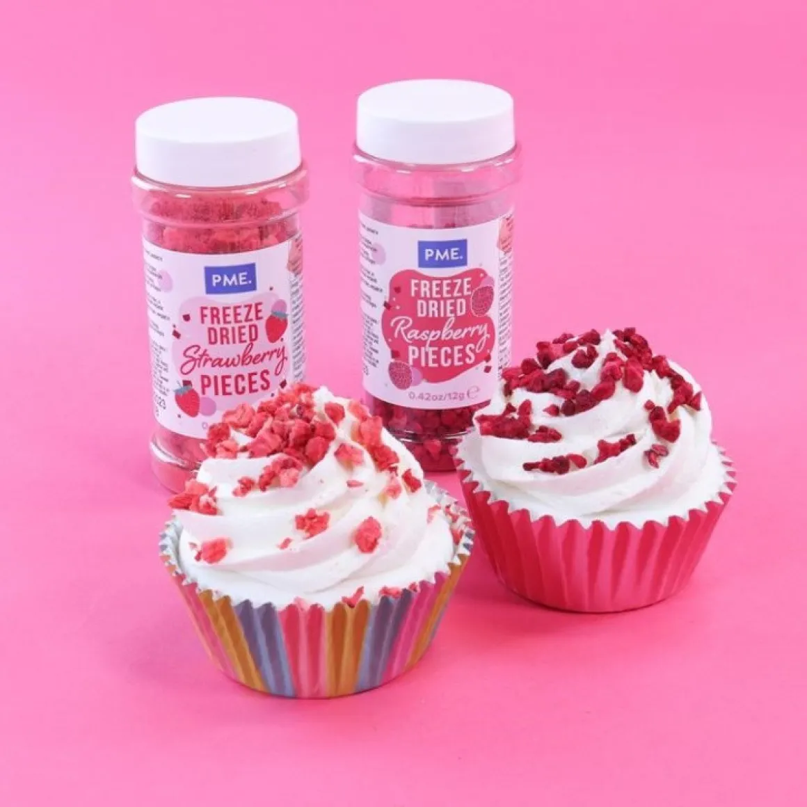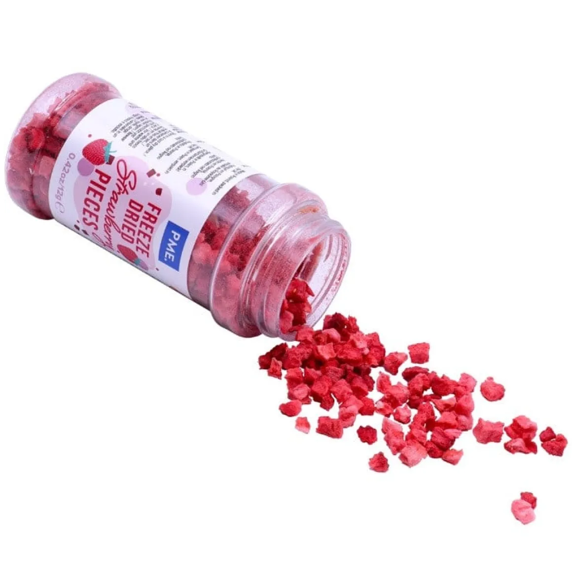 Je creatie een heerlijk vleugje aardbeien geven? Dat kan met deze PME Gevriesdroogde Aardbeien. De aardbeien zijn gevriesdroogd; dat wil zeggen dat alle voedingsstoffen, smaak en kleur zijn behouden. Bovendien is er niks aan de aardbeien toegevoegd, simpelweg aardbeien dus!