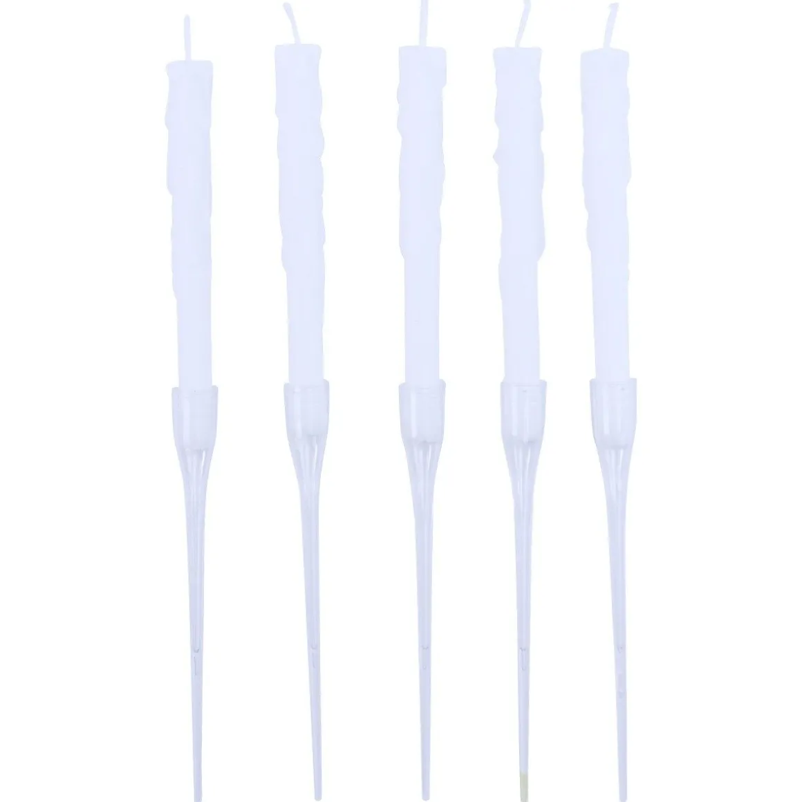 De kaarsen bestaan uit twee delen: de kaars en de houder. De kaars zelf heeft een witte kleur, druipend effect en is 10 centimeter lang. Dan heb je nog de transparante houder, deze zorgt voor een zwevend effect van de kaars.
