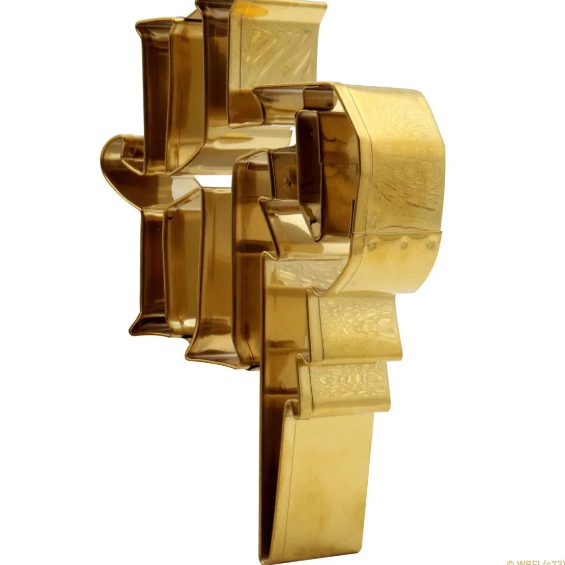 Met de PME Harry Potter Logo Uitsteker 10x6cm kun je zowel koekjes als decoraties creëeren. De uitsteker is gemaakt van metaal en heeft een gouden kleur.