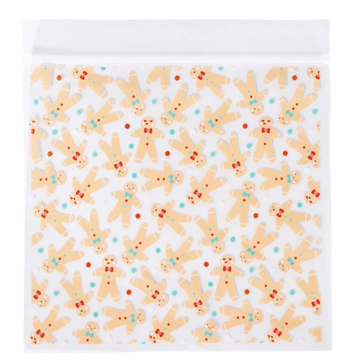 Gebruik de Hersluitbare Traktatiezakjes Gingerbread van PME om je kerstlekkernijen in stijl te verpakken. Set van 20 zakjes versierd met een peperkoekman ontwerp.