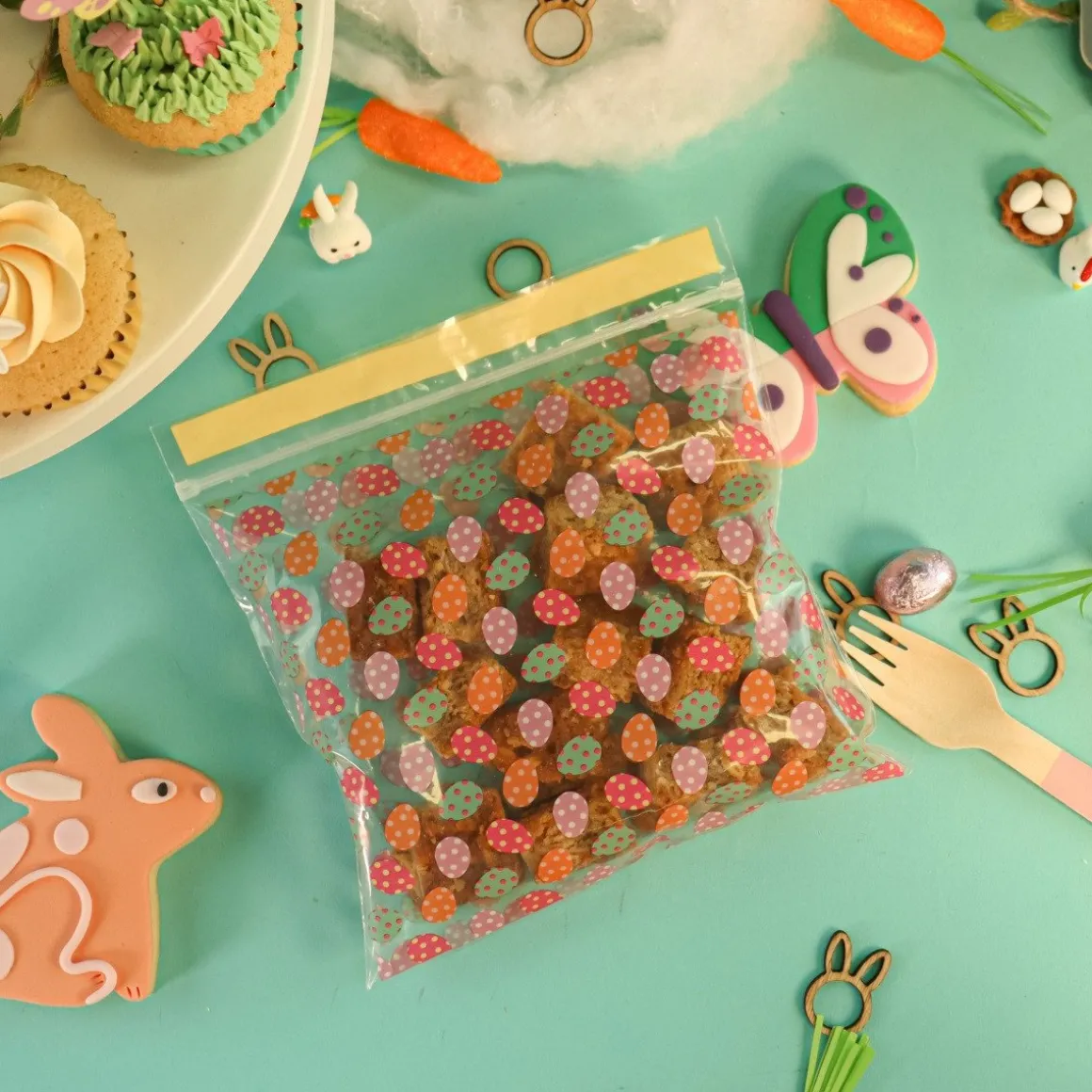 De PME Hersluitbare Traktatiezakjes Paaseieren 20st zijn doorzichtig en versierd met paaseieren in allerlei vrolijke kleuren. Perfect om lekkernijen in te doen en deze vervolgens uit te delen. Doe er bijvoorbeeld zelfgemaakte bonbons, mini cupcakes, koekjes of marshmallows in.