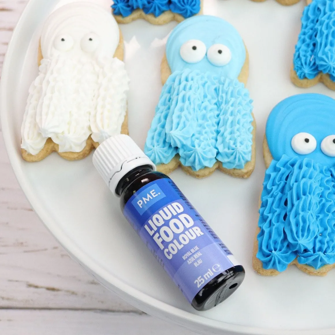 Met de PME vloeibare Kleurstof Donker Blauw 25g geef je eenvoudig botercrème, rolfondant, royal icing en nog veel meer een mooie donkerblauwe kleur. Voeg beetje bij beetje wat kleurstof toe, om de kleurintensiteit te krijgen die jij wil. Deze kleurstof is glutenvrij en alcoholvrij.