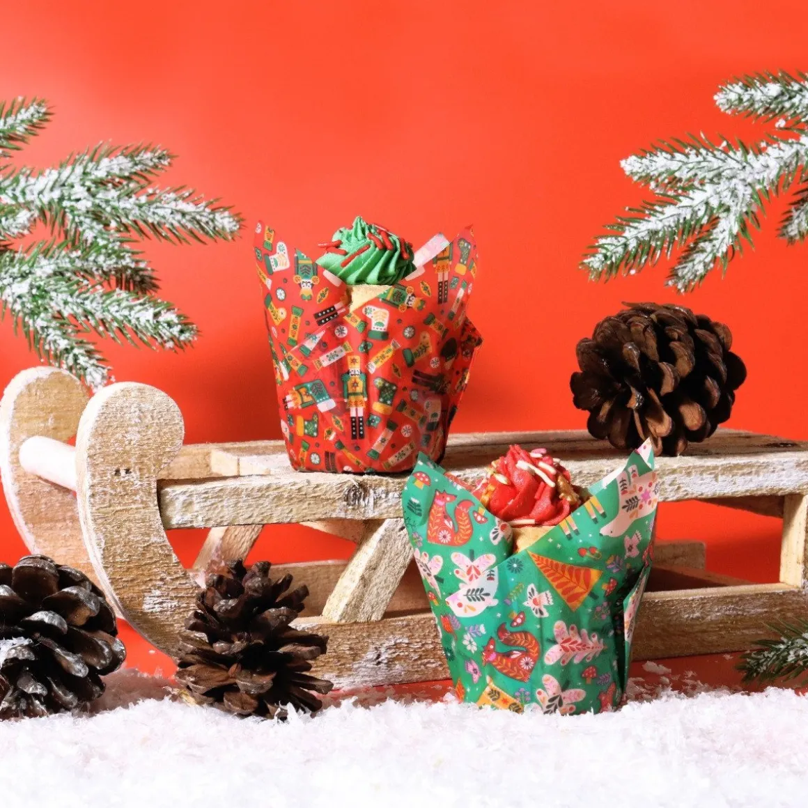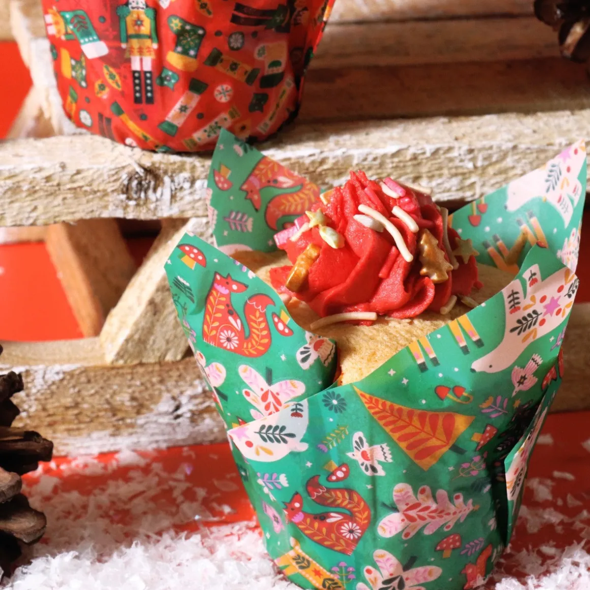 Maak je feestelijke muffins en cupcakes nog leuker met dePME Muffin Cups Betoverend Bos 24st. De set bestaat uit 24 vormpjes in 2 verschillende ontwerpen met patronen van notenkrakers, renderen, kerstbomen en meer! De vormpjes zijn gemaakt van vetvrij bakpapier zodat er geen vet doorheen lekt.