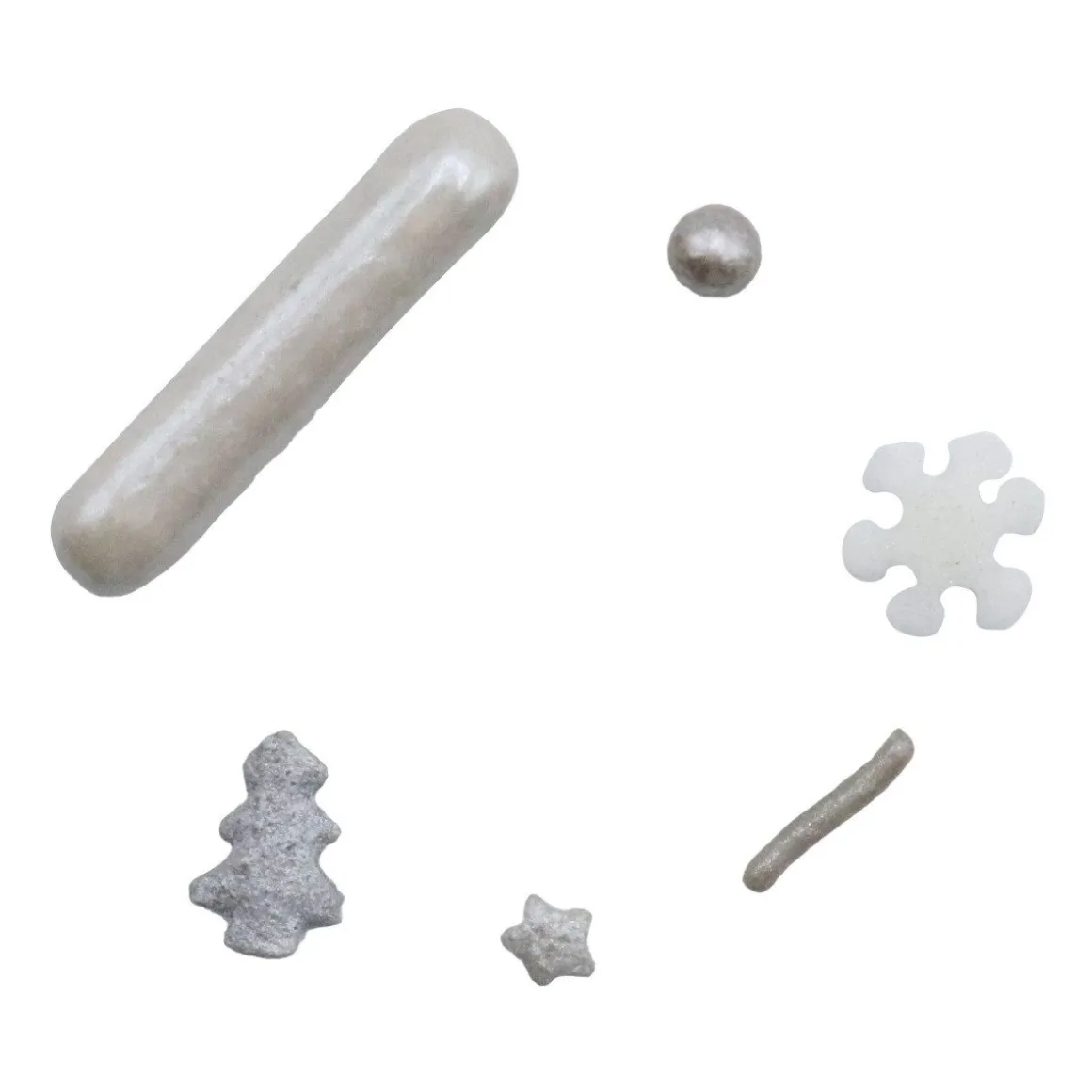 Hoop je op een witte Kerst? Die maak je nu zelf met de Sprinkle Mix Shining Stars van PME. De set bevat een mix van sterren, sneeuwvlokken, parels en jimmies in een zilver en wit thema.