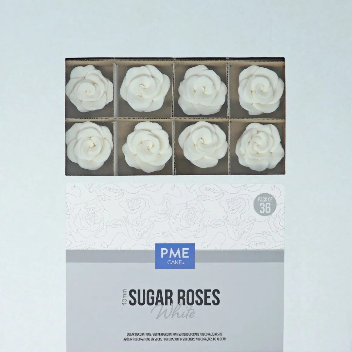 De PME Suiker Rozen Wit Ø4cm 36st zijn prachtige kant-en-klare decoraties op basis van suiker. De bloemen zien er geweldig uit op verschillende lekkernijen zoals cupcakes, gebakjes of desserts. Bovendien zijn deze witte rozen fantastische decoraties voor het versieren van bruidstaarten. De rozen hebben een diameter van 4 centimeter en de verpakking bevat 36 stuks.