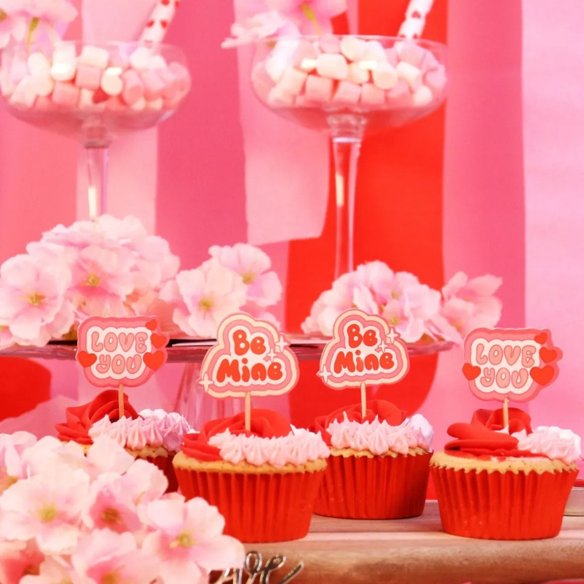 Bak verrukkelijke cupcakes, spuit er botercème op en geef een finishing touch met deze schattige toppers. Geweldig voor valentijns lekkernijen. Overigens kun je de taartprikkers ook gebruiken op brownies, desserts en natuurlijk nog veel meer! Ook leuk om te gebruiken voor hapjes.