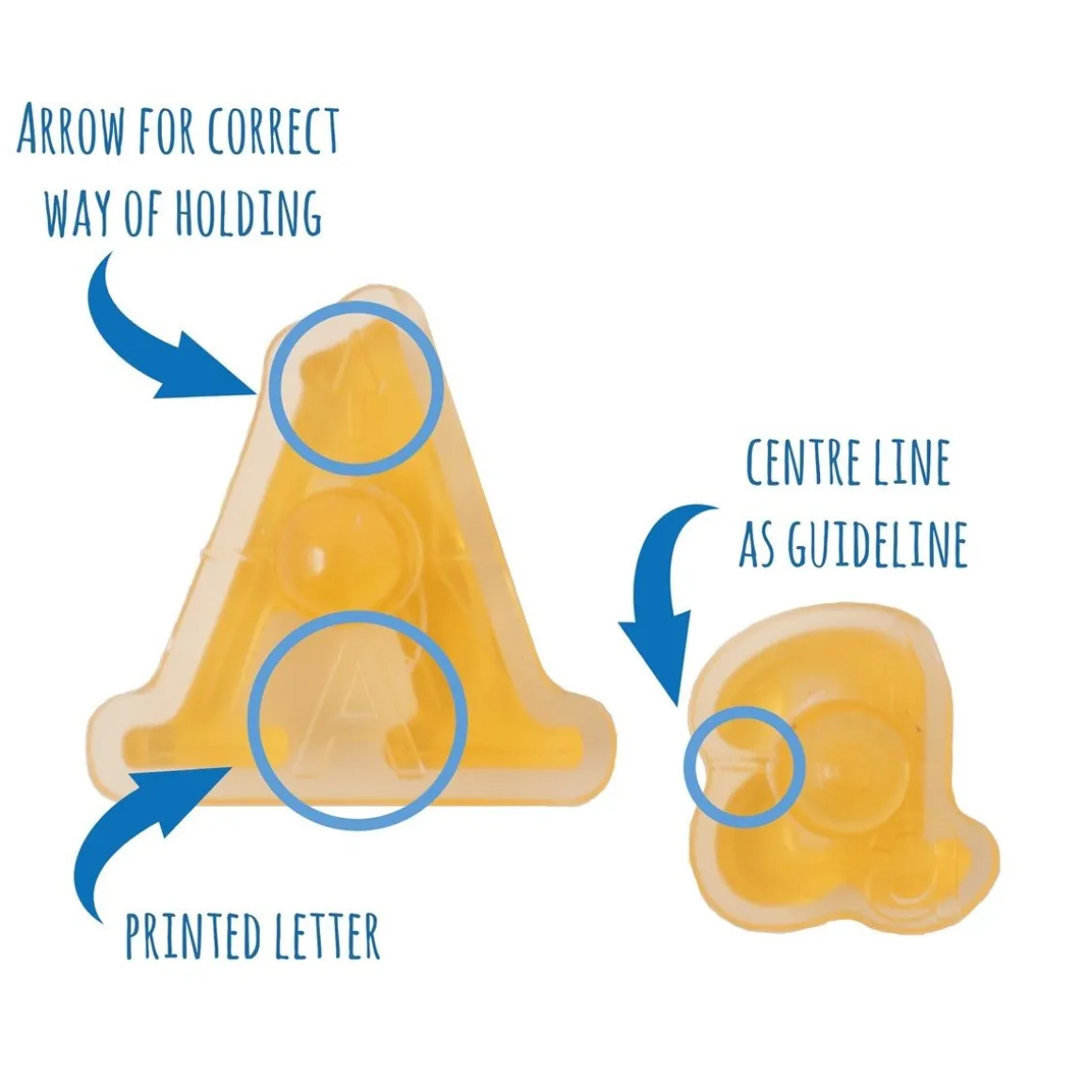 Koekjesstempelset Alfabet van het merk PME (Fun Fonts). Hiermee stempel je eenvoudig fondant, marsepein, gumpaste etc. Deze set bevat maarliefst 52 stempels, gemaakt van voedselveilig kunststof.