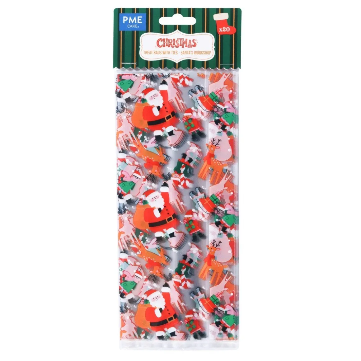 Plezier in een zakje! Jouwn kerstbaksels verdienen het om leuk ingepakt te worden, en dat doe je met de PME Traktatiezakjes Kerstman 20st. Het transparante zakje met een kerstman- en elfontwerp meet 10 x 24,1 cm en wordt standaard geleverd met twist ties om de tas te sluiten.