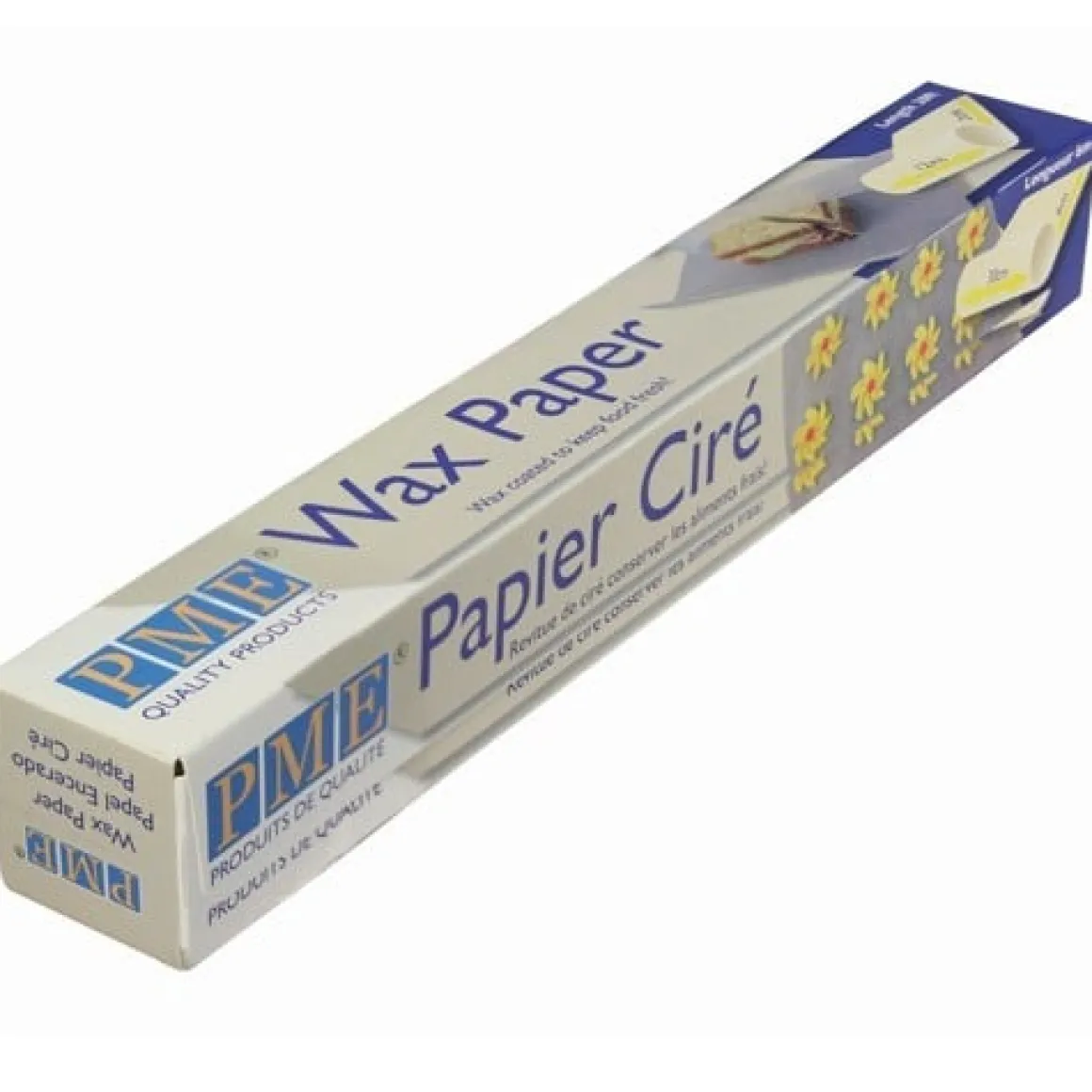 Wax papier van PME is gecoated papier om voedel vers te houden. Denk bijvoorbeeld aan broodjes, kaas, koekjes, cakes die je kunt verpakken in het wax papier. Het papier zorgt ervoor dat het voedsel de versheid behoud en dat het niet uitdroogt (bij bijvoorbeeld een cake of sandwich).
