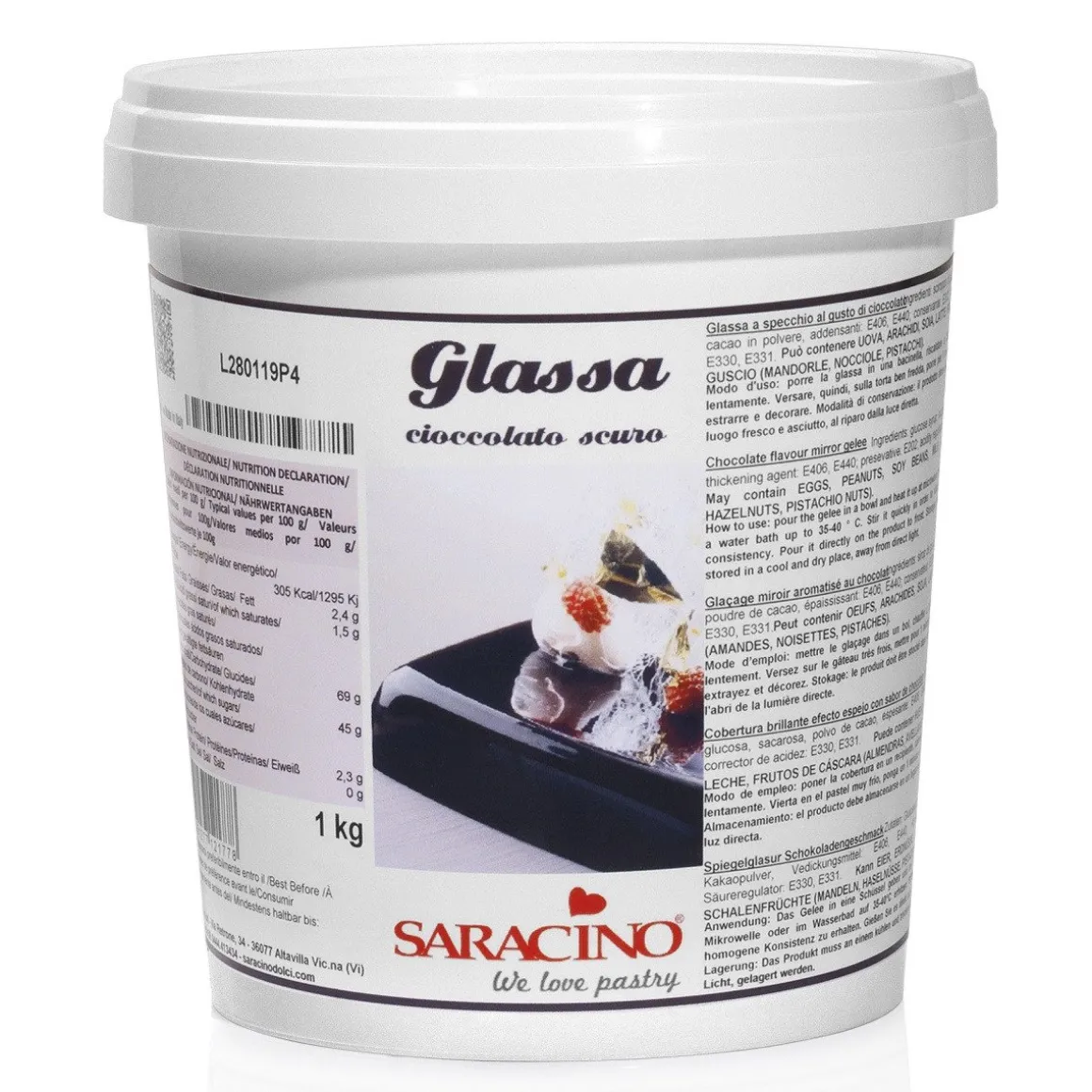 De Saracino Mirror Glaze Pure Chocolade 1kg is een fijn product om je baksel een finishing touch te geven. Het is een kant-en-klare glazuur, die een spiegel effect geeft. Ideaal voor het afglanzen van lekkernijen.Perfect te gebruiken voor taarten, crèmes, mousses, bavarois, ijstaarten en bevroren desserts.