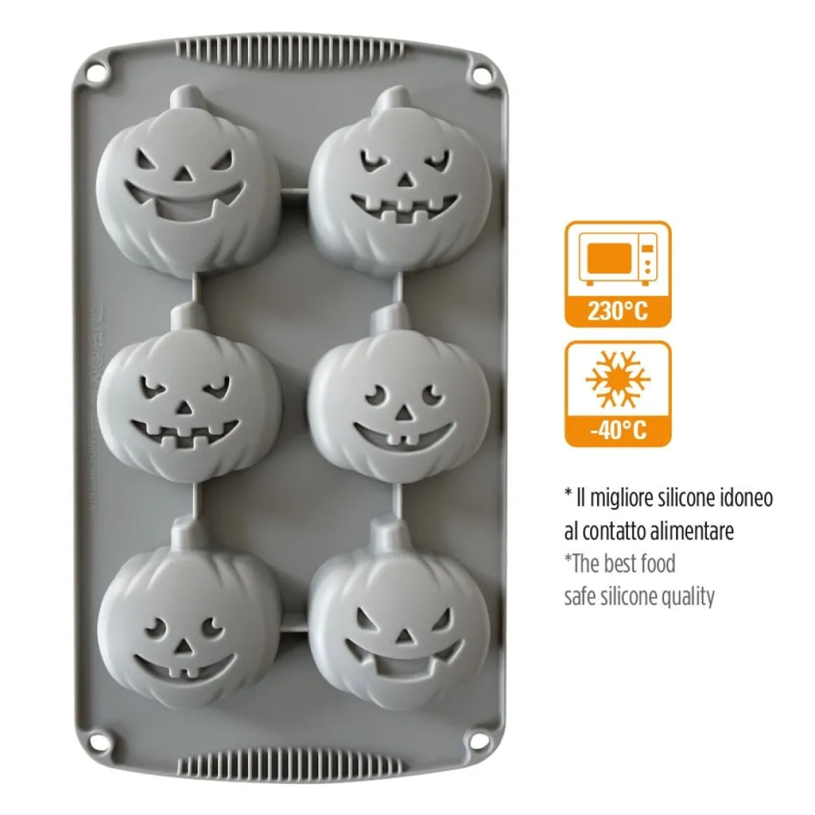 Bij Halloween zijn pompoenen natuurlijk niet weg te denken. Met deze mal gemaakt van siliconen maak je leuke kleine pompoentjes voor een Halloween feestje of om uit te delen aan kinderen die langskomen. Leuk voor cake, brownie, chocolade etc.