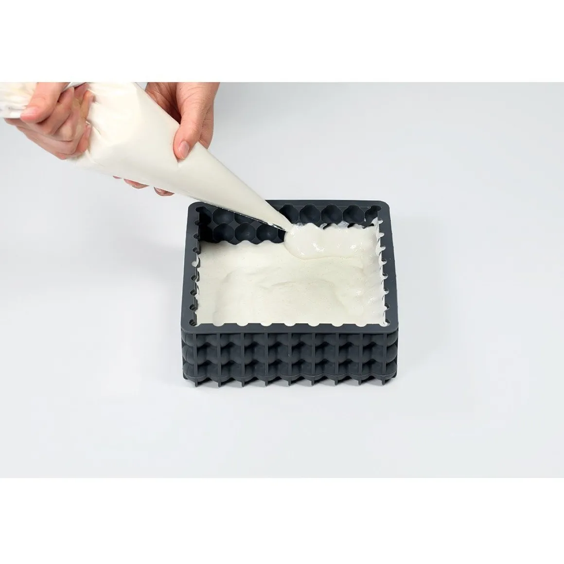 Met deze bakvorm bak je een prachtige vierkante cake met bollingen op de boven- en zijkanten.