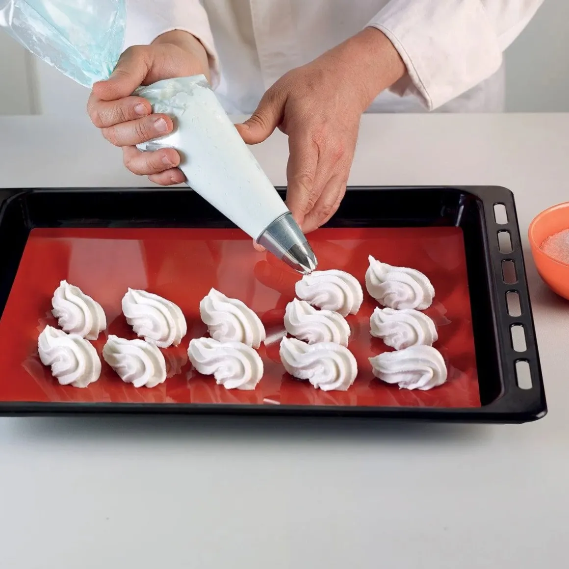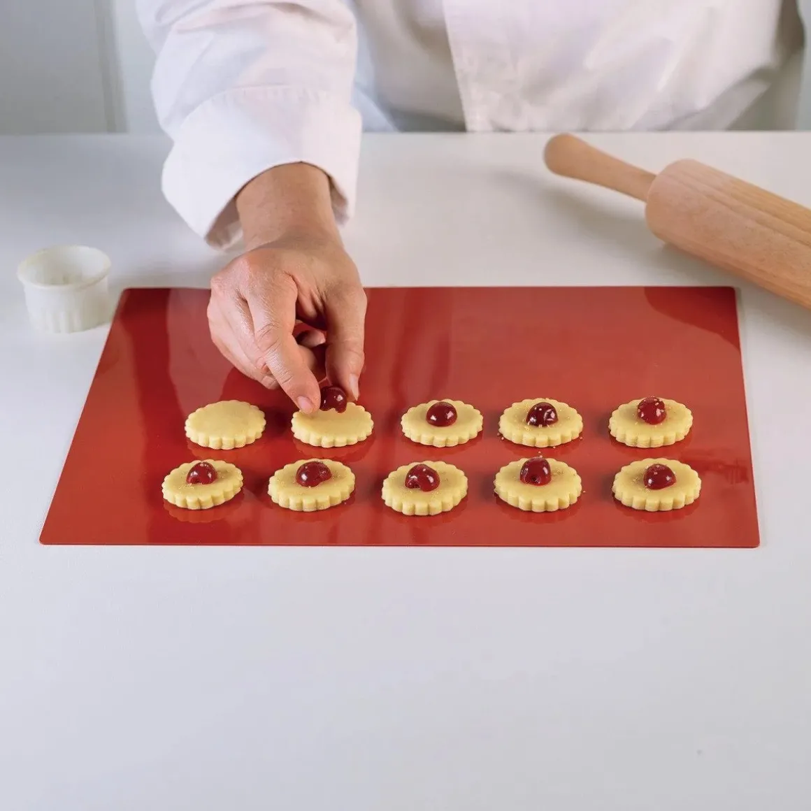 De Silikomart Siliconen Bakmat 30x40cm heeft een rode kleur en is gemaakt van een uitstekende kwaliteit siliconen. Deze heeft een rechthoekige vorm en een afmeting van 30 bij 40 centimeter. Een fijne herbruikbare bakmat!