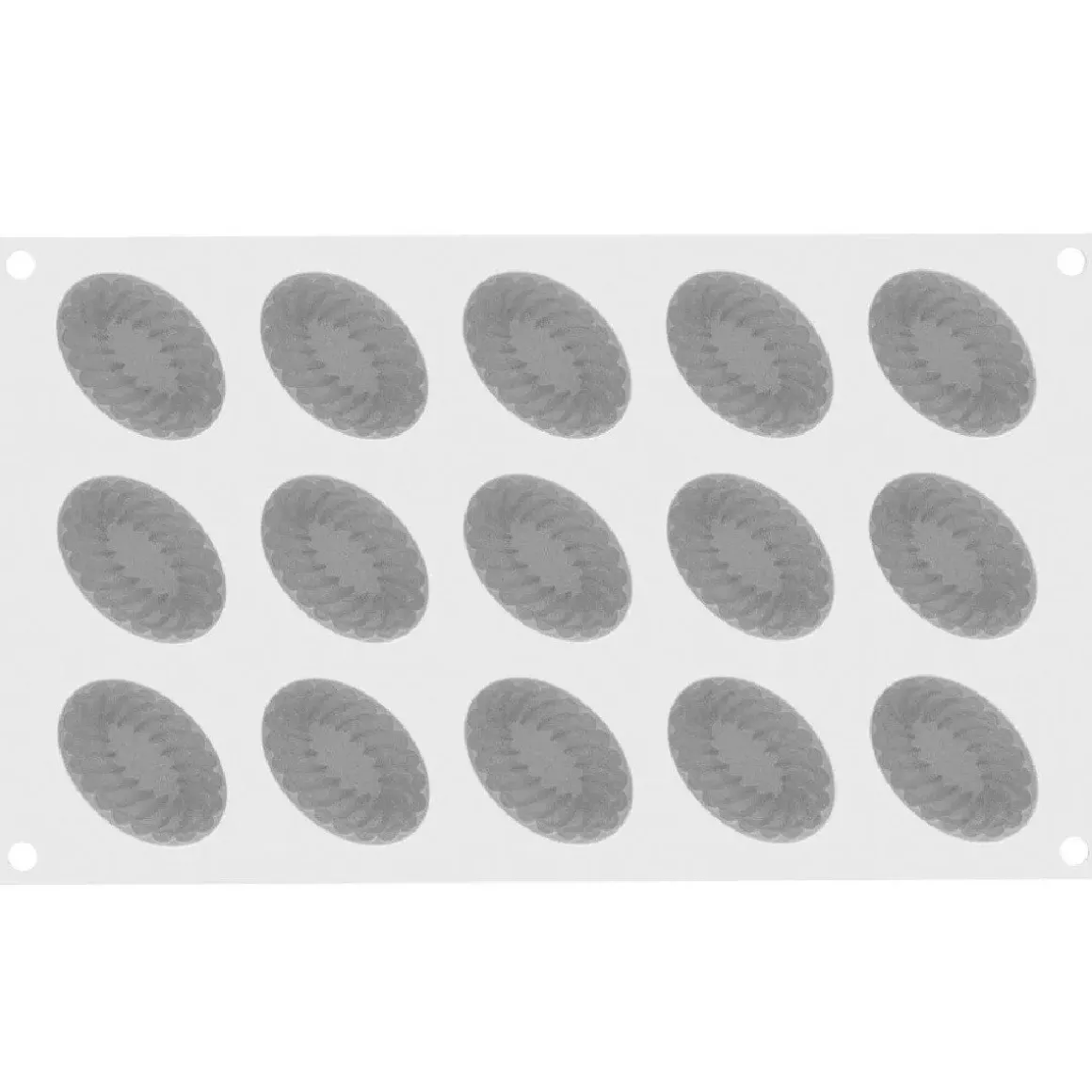 Maak prachtige creaties in de Silikomart Siliconen Bakvorm Pleincoeur Ovaal (15) 53x36mm. Deze bakvorm bevat 15 gedetailleerde holtes in een ovale vorm met een verfijnd reliëfpatroon. Perfect voor het maken van 1-persoons gebakjes zoals moussecreaties, mini-cakes, semifreddo’s en luxe chocoladedesserts.