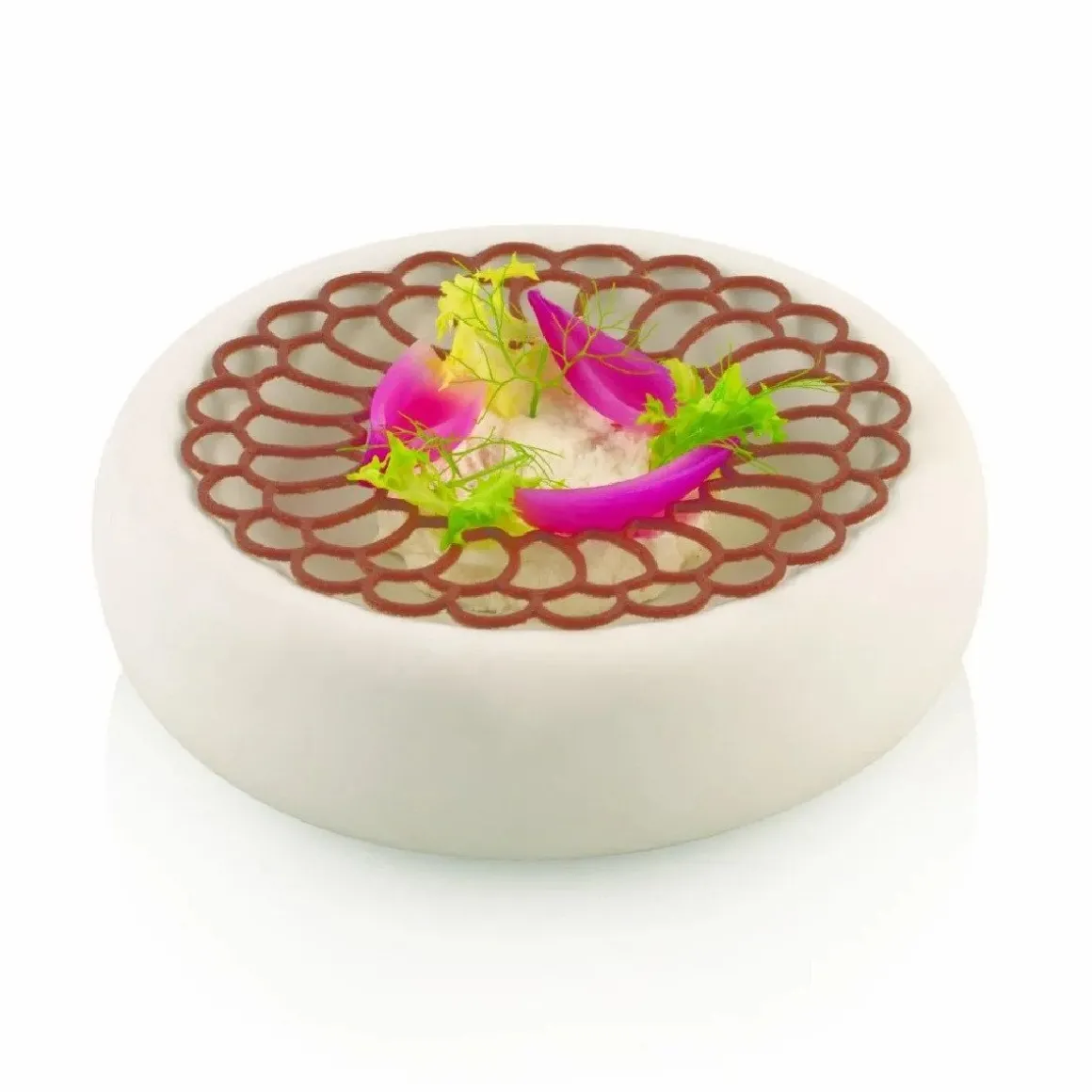 Door de gedetailleerde structuur geef je jouw creaties een verfijnde afwerking. Deze decoratieve mat is perfect om taarten, entremets, gebakjes of desserts een finishing touch te geven.