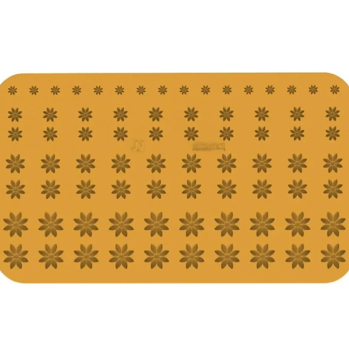 De Silikomart siliconen mat Margherita (76) is een decoratiemat met 76 bloemvormige holtes in verschillende groottes. De speelse margrietvormen zijn gedetailleerd uitgewerkt en bieden allerlei mogelijkheden voor het maken van verfijnde, eetbare bloemdecoraties.