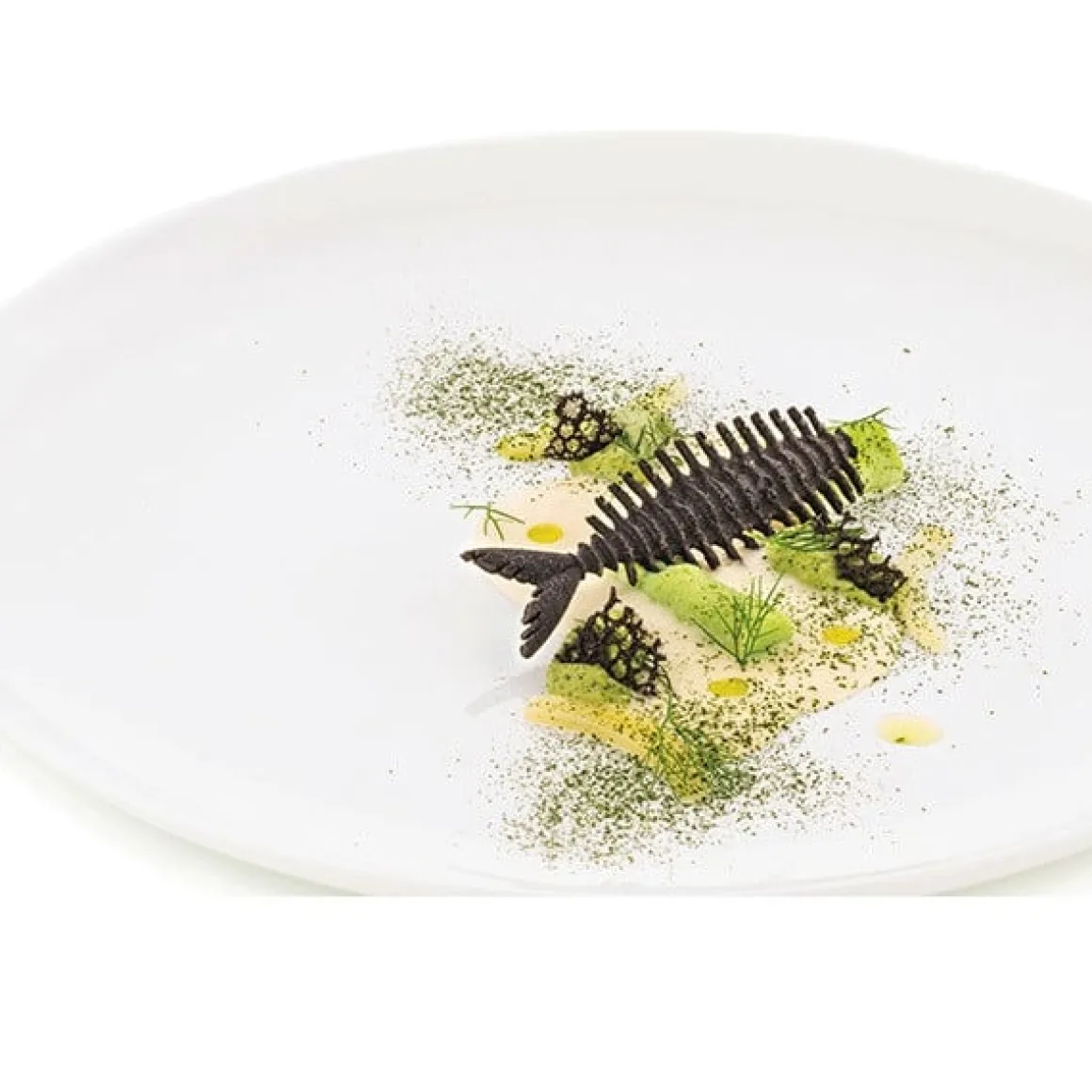 Als een vis in het water, dat zijn de decoraties die je metdeze bakmat van Silikomart kunt maken. Met de Silikomart Siliconen Mat Vis maakje zelf de mooiste visdecoraties voor op taarten, gebak, maar zeker niet tevergeten op/bij voor-, tussen-, bij- en hoofdgerechten. Doordat je zelf eeninvulling kunt geven aan de decoratie kun je ook zelf ook de smaak en kleurbepalen. Maak de hele smaakbeleving compleet door het zicht van de gast ook meete nemen.