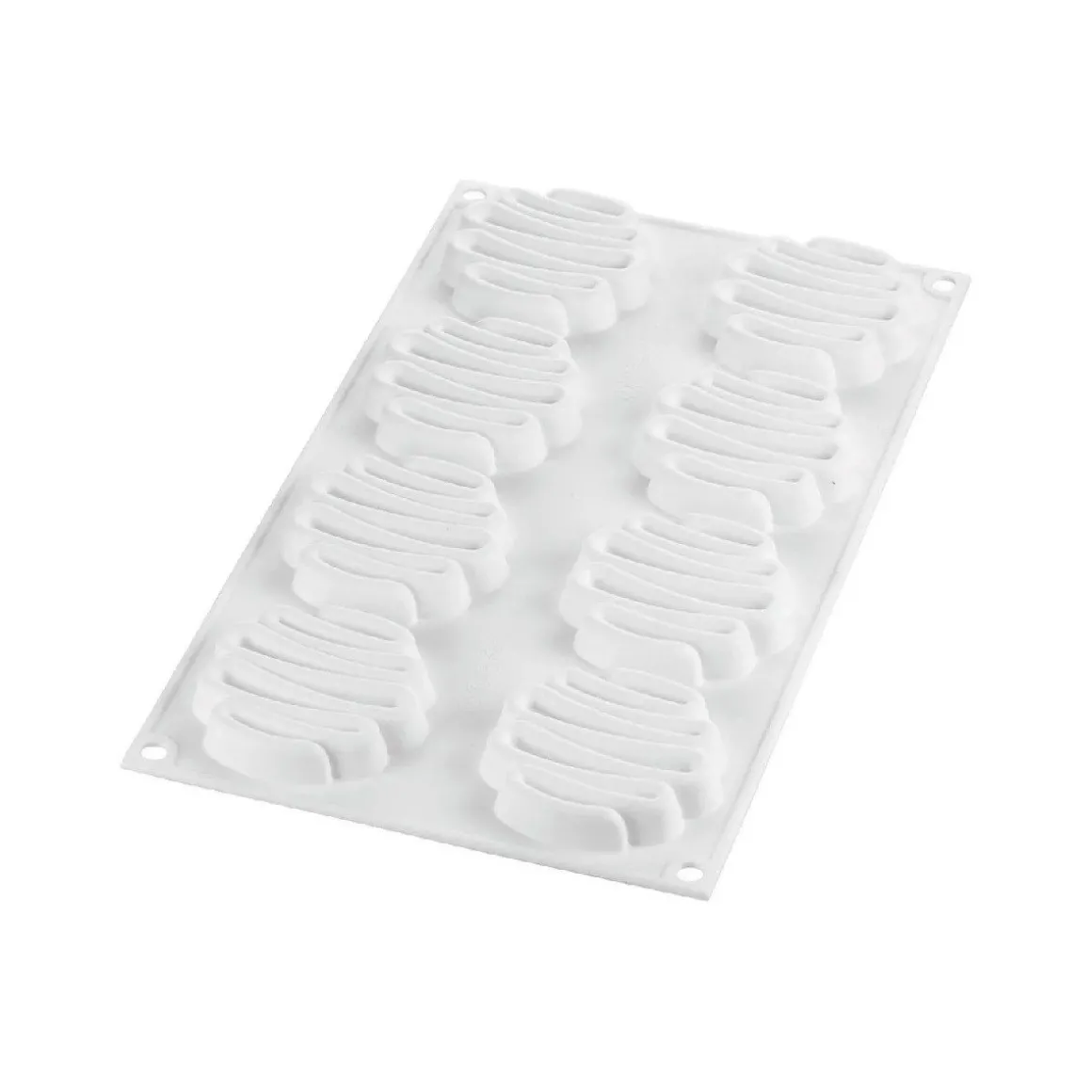 Met de Silikomart Siliconen Vorm Honoré (8) Ø7×1,3cm maak je chique decoraties voor op gebakjes, taarten en zelfs bij gerechten. Met de vorm kun je 8 creaties maken.