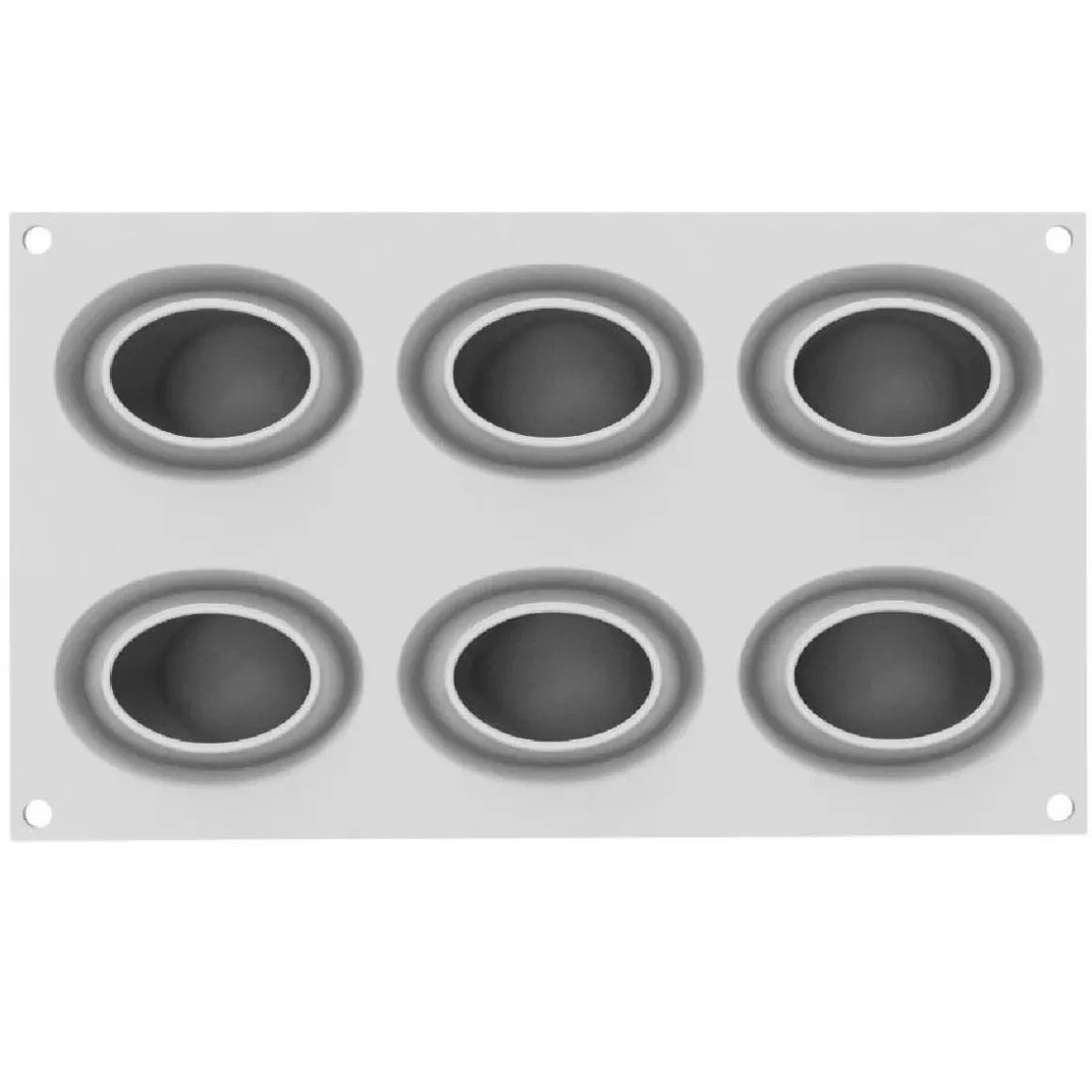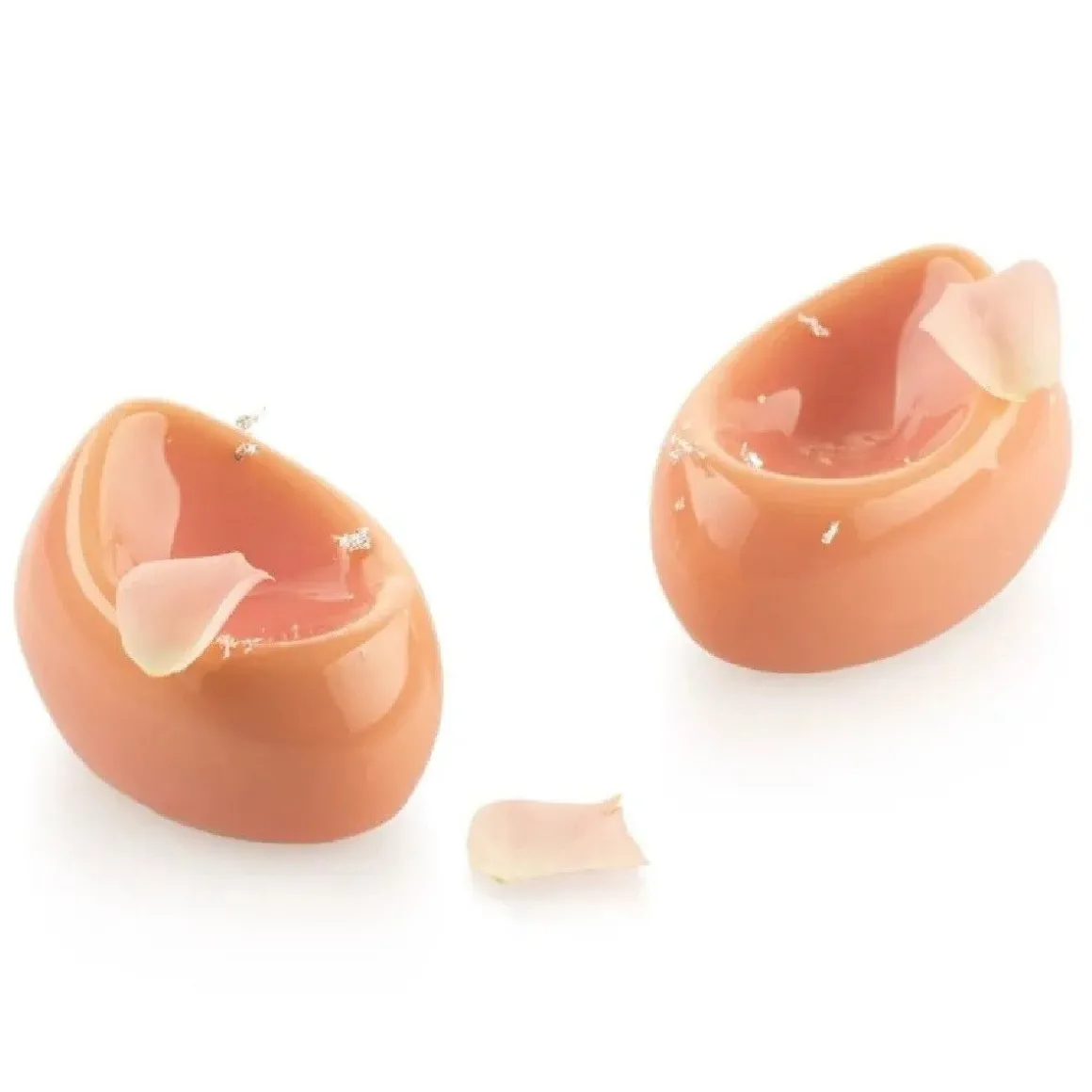 De Silikomart Siliconen Vorm Nebula (6) Ø7,5×5,2×4,7cm heeft een ovale vorm met een inkeping aan de bovenkant. Perfect om verfijnde en luxueuze gebakjes en desserts in te creëren. Prachtig om elegante mousses of parfaits in te maken. Verder is de vorm ook geschikt voor lekkernijen met een warme bereiding, zoals cakejes. Het siliconen materiaal is namelijk bestand tegen temperaturen tot 230 °C.