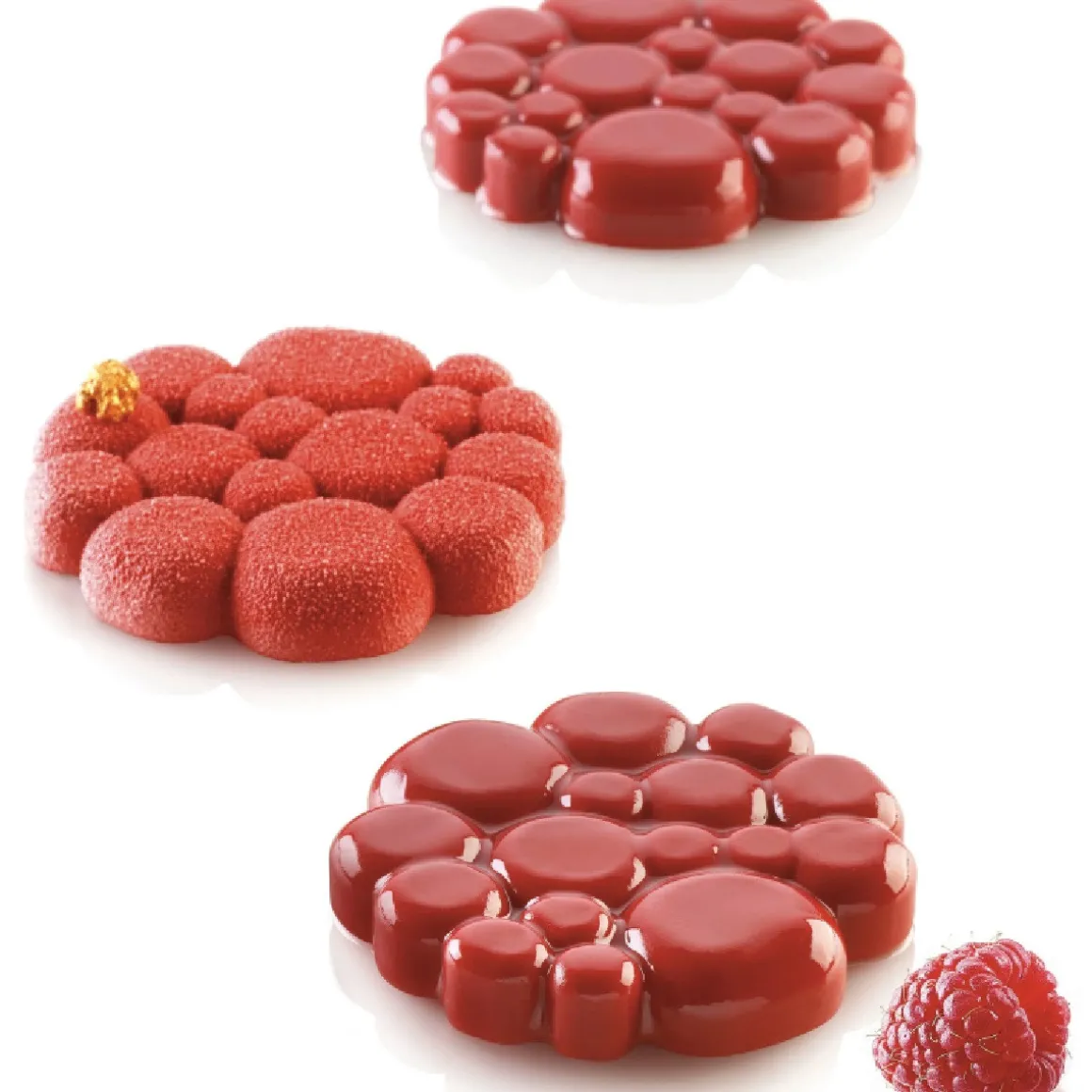 Met behulp van de Silikomart Siliconen Vorm Paradis (6) Ø7×1,1cm creëer je geweldige toppings voor op je baksels. De siliconen vorm heeft 6 holtes die een ronde vorm hebben met daarin kleine ronde figuren. Elke vorm heeft een doorsnede van 7 centimeter en een hoogte van 1,1 centimeter.