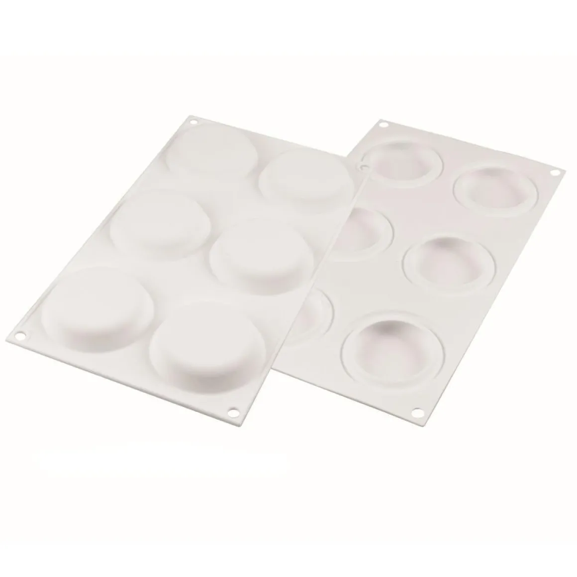 Maak mooie luxe taartjes met de Silikomart siliconenvormen & taartring set. De set bestaat uit twee delen: zes ringen met een diameter van 80 mm en een siliconen mal met 6 rondjes die Ø67 mm zijn. De ringen zijn geschikt om te bakken in de oven tot 180 °C, hebben anti-aanbak laag en zijn roestvrij. De siliconen mal kun je vullen met schuim, mousse of room.