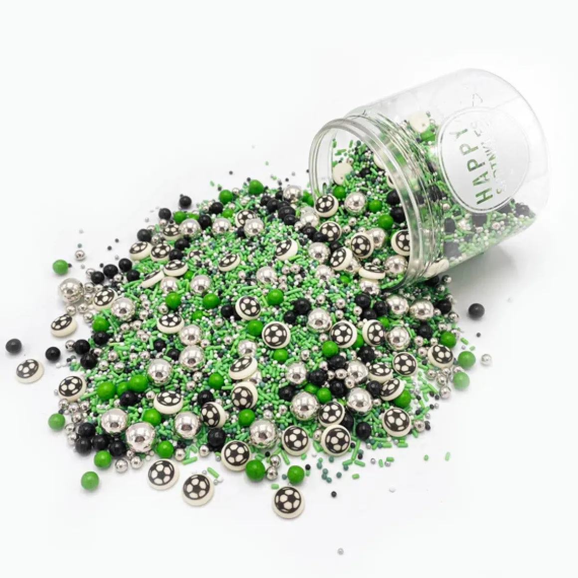 De Sprinkles Football Champion 90g zijn geweldig voor alle voetbal fanaten. De strooisels hebben voornamelijk een groene kleur en natuurlijk ontbreken de voetballen niet in de mix. Leuk op diverse baksels. Geweldig op voetbal cupcakes, koekjes, chocolaatjes en natuurlijk feesttaarten!