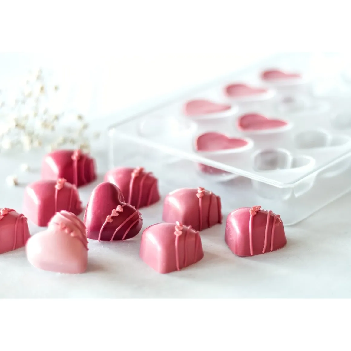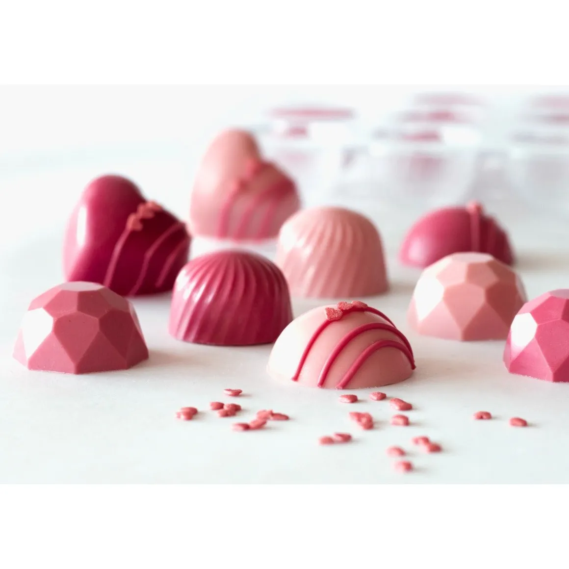 Geweldig om bijvoorbeeld roze bonbons te maken met ruby chocolade en te vullen met een heerlijke fruitvulling!