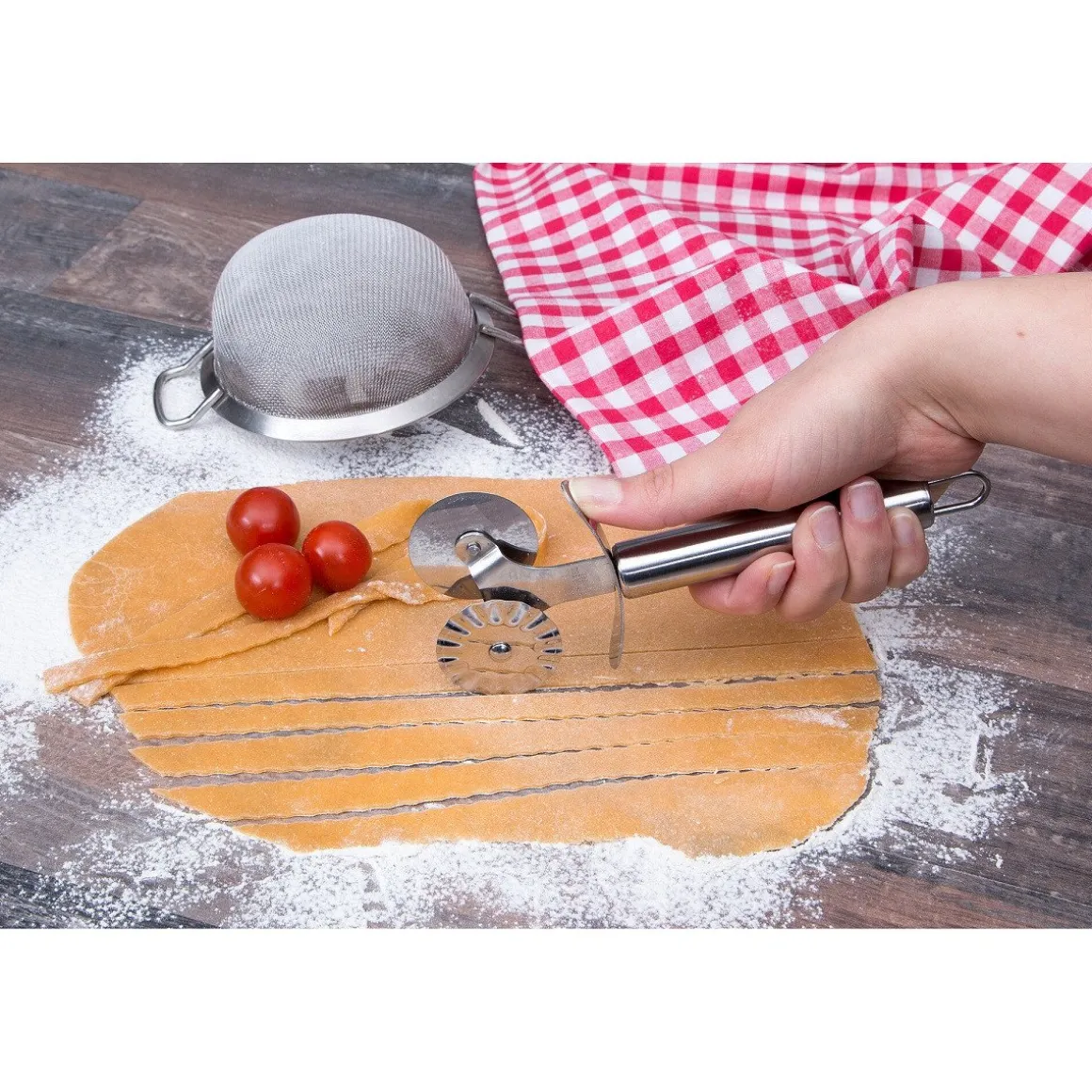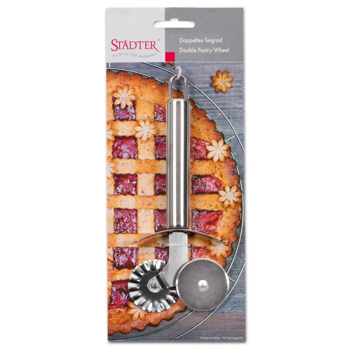 Een mooi raster maken op je taart of vlaai, ravioli snijden, fondant en/of marsepein snijden en decoreren, het kan allemaal met deze deegsnijder van het merk Städter. De snijder heeft een dubbel effect, je kunt er kartel en gladde randen mee maken. Het gebakswiel is gemaakt van hoogwaardig, stevig roestvrijstaal materiaal, wat hem ook vaatwasmachinebestendig maakt.