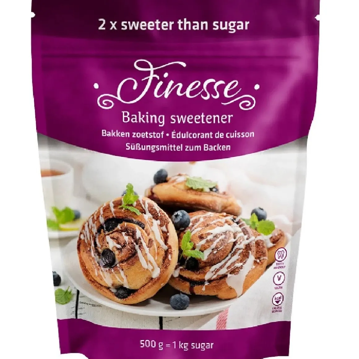 De Sukrin Suikervervanger Finesse 500g is uitermate geschikt om mee te bakken. Deze samenstelling bestaat onder andere uit erythritol en is 2 keer zo zoet als suiker. Wel heeft deze stof bijna dezelfde eigenschappen als suiker.