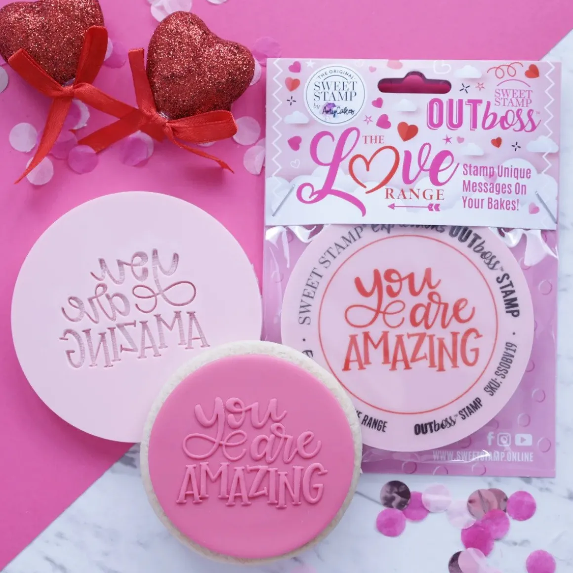 Met de Sweet Stamp Outboss You Are Amazing wordt het vrij eenvoudig om prachtige 3D-opdrukken te maken op onder andere sugar paste, fondant, gumpaste en modelleer chocolade. Het is bijvoorbeeld heel erg leuk om met dit artikel koekjes en/of cupcakes te versieren en die lekkernijen cadeau te geven aan iemand die je liefhebt. Een OUTBoss™ is het tegenovergestelde van een Sweet Stamp element. Waar je met een element cijfers, letters en symbolen in bijvoorbeeld fondant drukt, lijkt het met een OUTBoss™ juist alsof cijfers, letters en symbolen op het fondant zijn geplakt. Echter komt bij het gebruiken van een 3D-opdruk met een Outboss™ geen eetbare lijm kijken. De Outboss™ heeft het perfecte formaat om opdrukken te maken die precies op middelgrote koekjes en cupcakes passen. Je kunt eventueel apart een PickUpPad bestellen om het voor jezelf nog makkelijker te maken om dit product te gebruiken, deze is niet bij dit product inbegrepen.