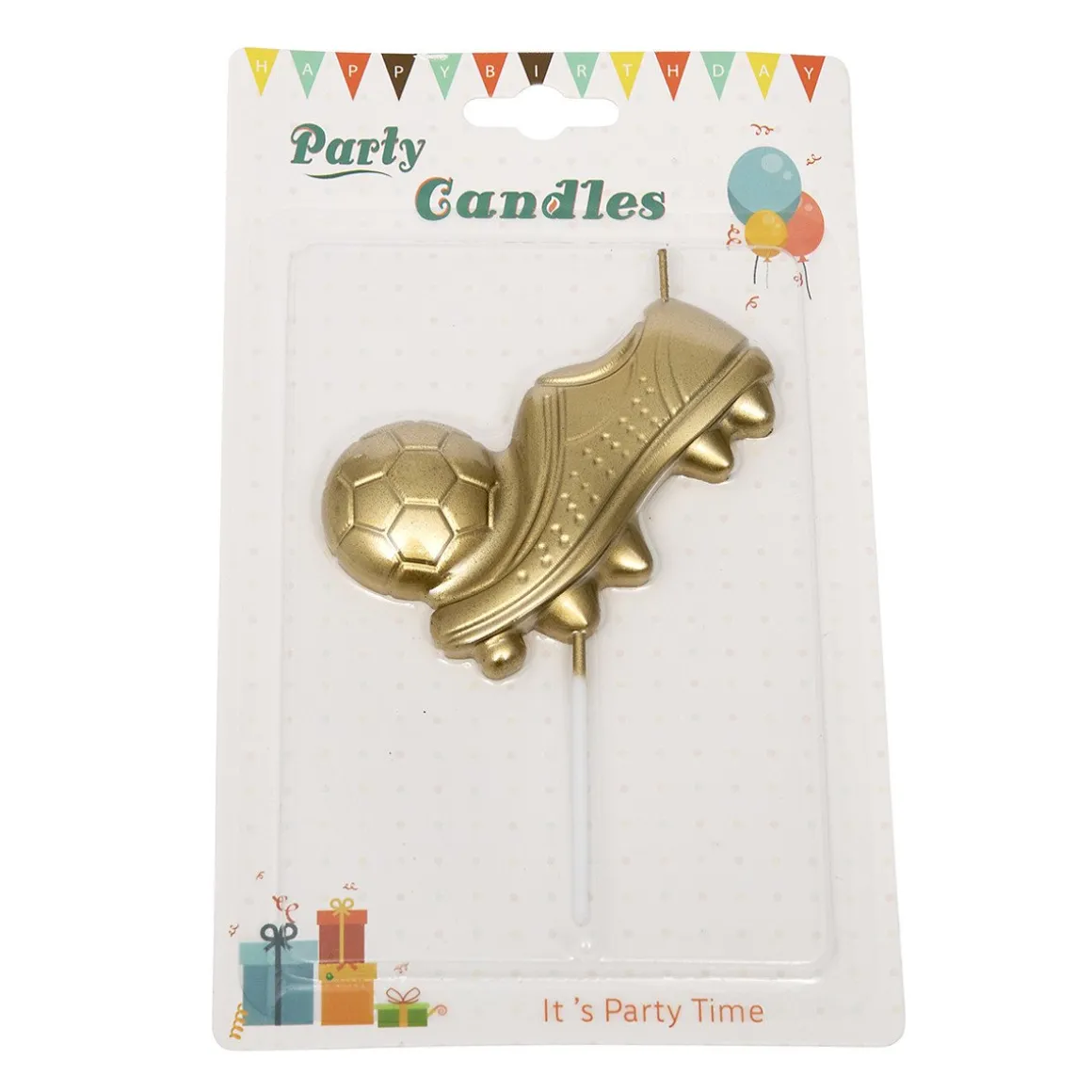 Dit Taartkaarsje Gouden Voetbalschoen is super leuk voor voetbal fans! Het kaarsje bestaat uit een voetbalschoen met op de neus van schoen een voetbal. De kaars is geheel goudkleurig. Ontzettend mooi op taarten, cupcakes of desserts. Bovendien prima te combineren met andere gouden taartkaarsjes.